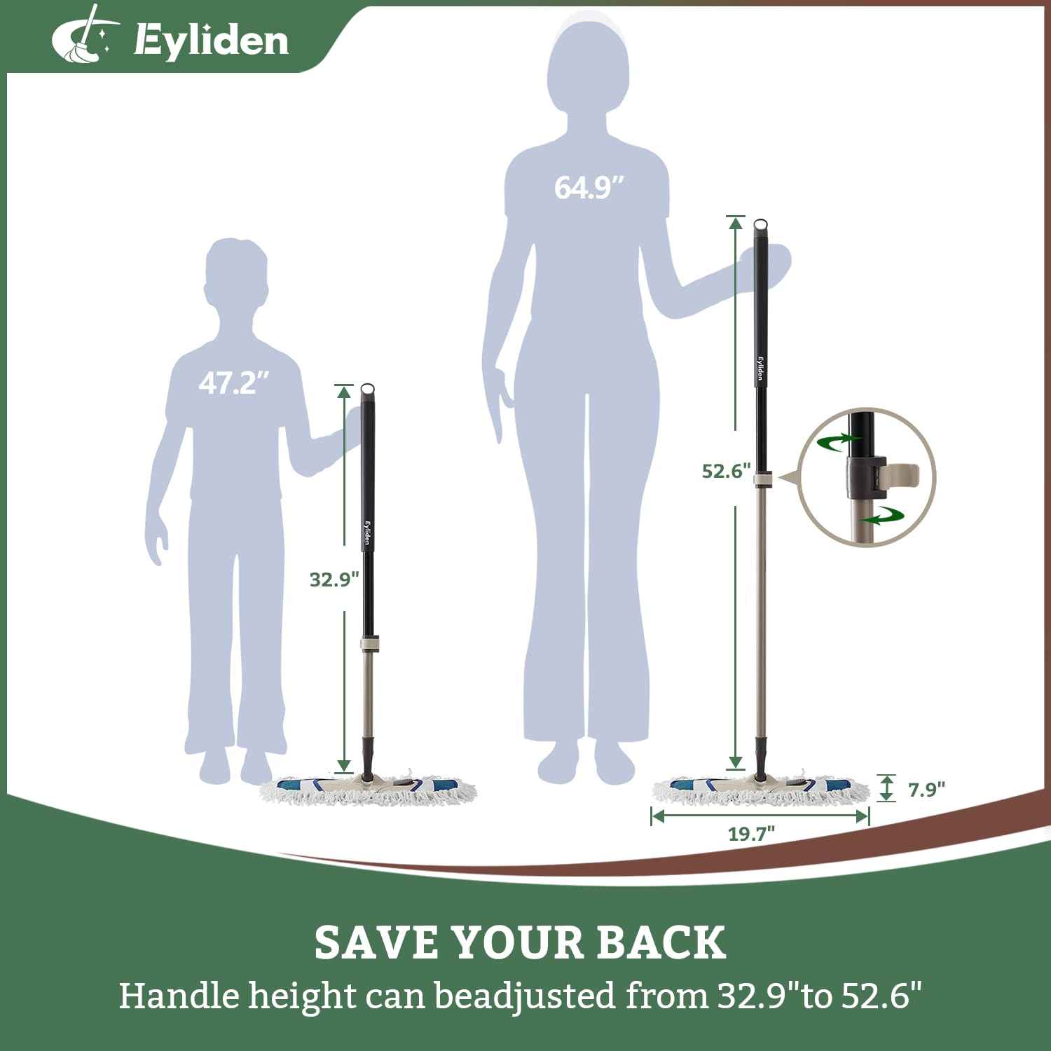 Eyliden (エイリデン) ダストモップ 何度も洗って使えるパッド2個付き - ワンタッチで交換 高さ調節可能なハンドル ウェット&ドライモップ 床掃除/ハードウッド/ラミネート/タイルフローリング プッシュダストモップ (ブルー)