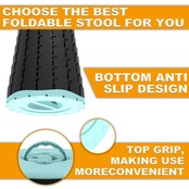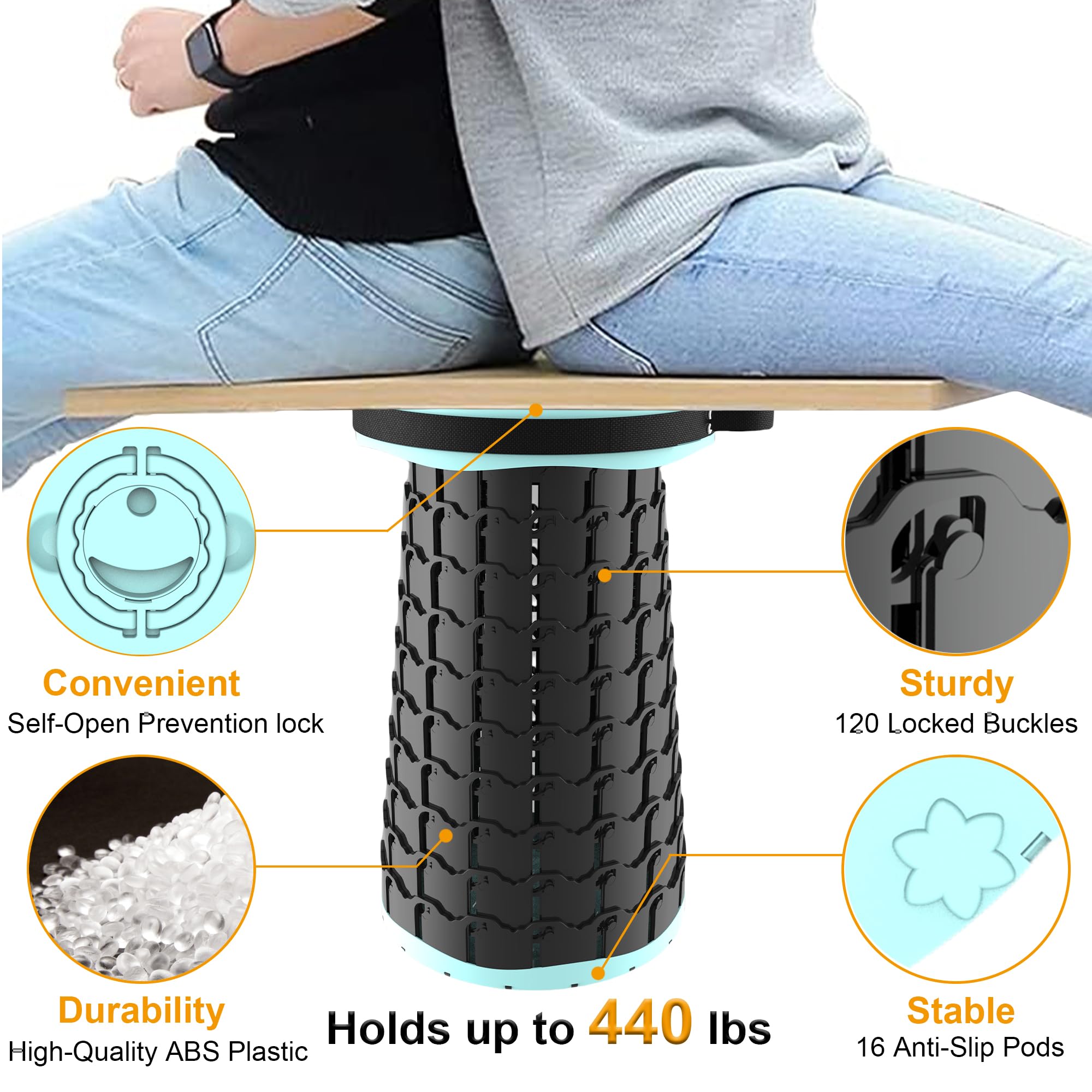 【軽量・コンパクト・耐荷重200kg】:伸縮式チェア本体は1kgしかないにもかかわらず、頑丈なABSとポリアミドを採用しており、最大荷重は200kgにも達しています。滑りにくさを追求した特殊デザインの底部を採用し、滑り止めので安全性を高めています。頑丈で環境にやさしいプラスチックPA + ABSを採用することにより強度が強くなり、軽量で携帯しやすくて、構造も安定しています。
