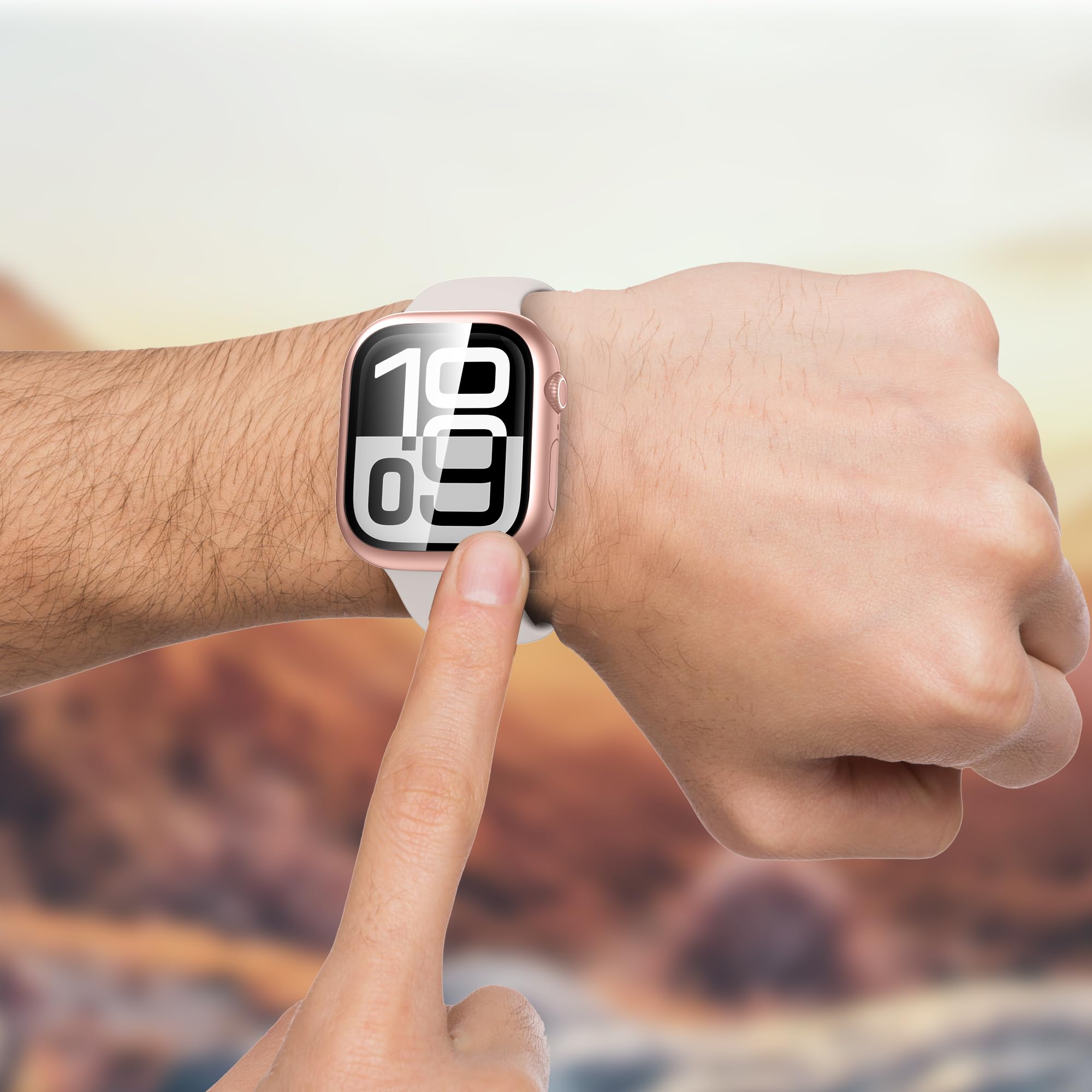 TALENANA for Apple Watch 防水ケース 42mm/46mm 保護カバー 強化ガラスフィルム 一体型 全面保護 衝撃吸収 Apple Watch Series 10/11対応 PC素材 装着簡単 タッチ感良好 アップルウォッチ ケース(42mm(Series 11/10),ローズゴールド)