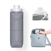 【特価在庫】折りたたみ ボトル 携帯用 スポーツ 水筒 漏れ防止 大容量600ml 超軽量 洗いやすい 無毒無臭 耐冷耐熱 日常生活をする 通勤する アウトドア 旅行する 自転車登山用 環境保護ウォーターボトル (グレー) | GIGATERA