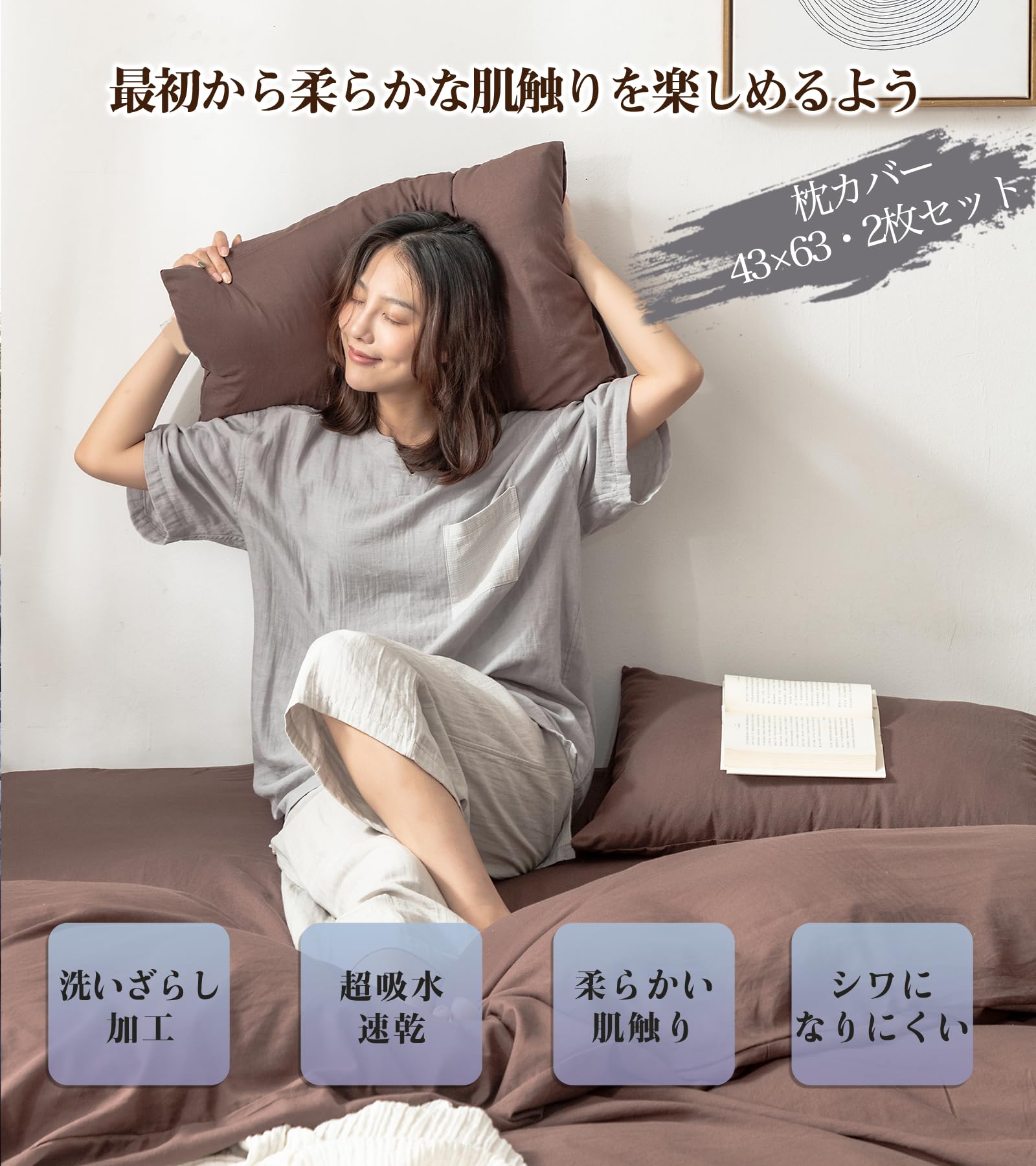 【新着】Magic Fit 枕カバー 43 63 2枚セット【洗いざらし & 超柔らかタイプ】まくらカバー オールシーズン 枕カバー 40 60 pillow case set of 2 抗菌防臭 ピローケース 封筒式 吸水速乾 枕カバー セット pillowcase 丸洗いOK ピローカバー 肌に優しい Magic Fit(枕カバー 43x63CMブラウン) | GIGATERA