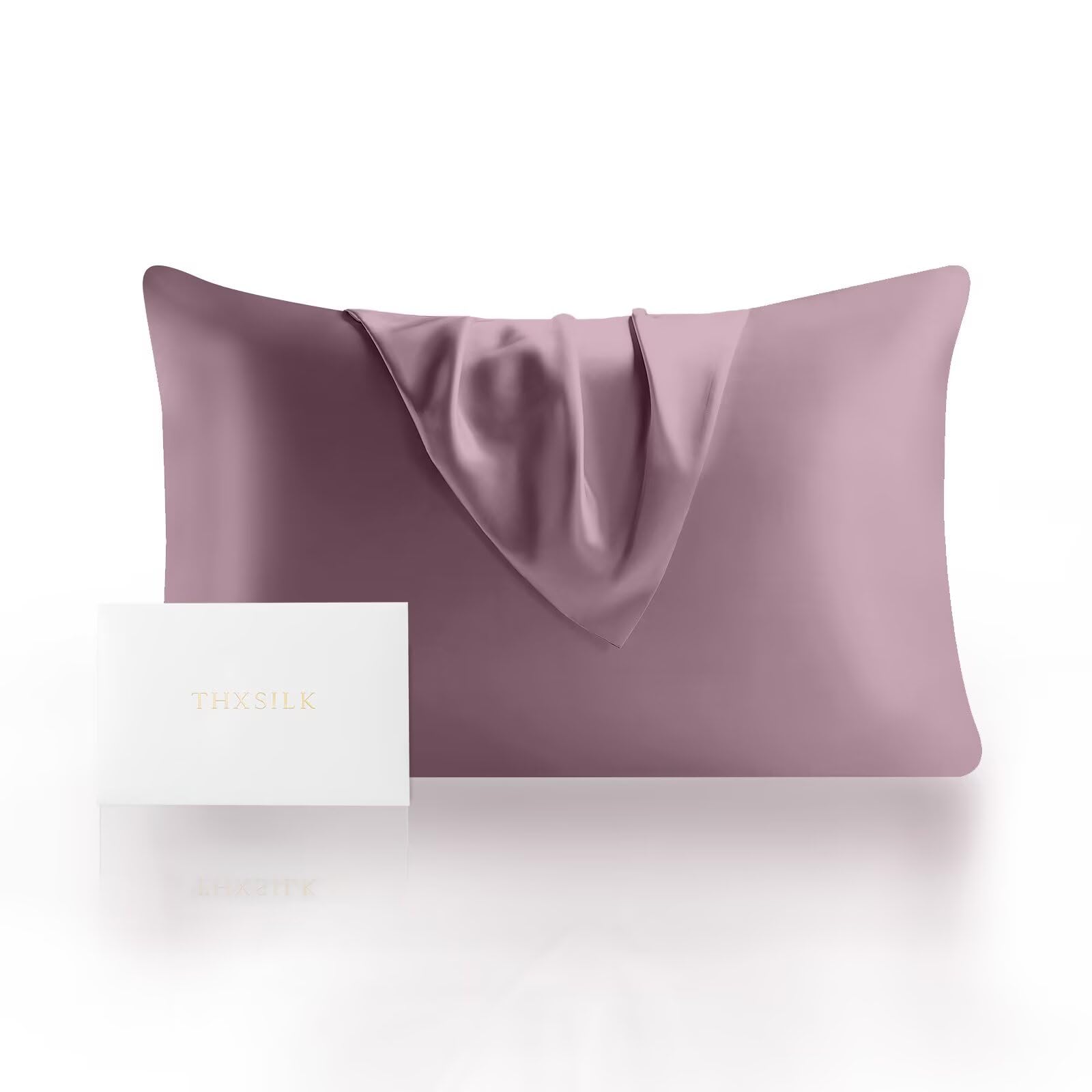 [THXSILK] 枕カバー シルク 封筒式 最高グレード6A OEKO認証済 100%シルク 両面 洗える 美髪・美肌 敏感肌 睡眠サポート 寝癖軽減 静電気防止 防ダニ・抗菌 光沢 ギフト 贈り物 四季適応 一枚 (50*70cm・ パープル)