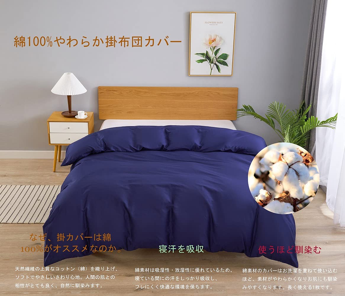 掛けふとんカバー セミダブル 170x210cm 綿100% 掛け布団用カバー 平織り 布団カバー 防ダニ 抗菌 ネイビー