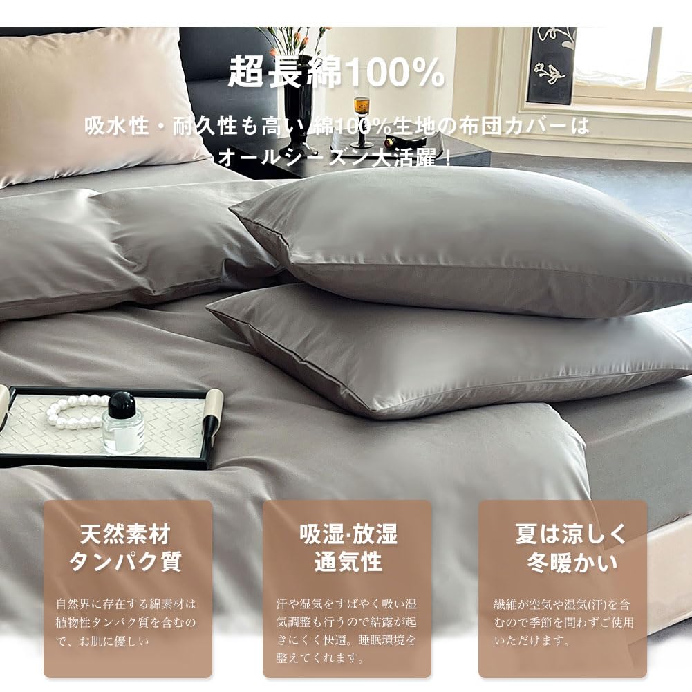 【ホテル仕様の贅沢掛けふとんカバー】:厳選素材と厳格な品質にてできたホテルのような贅沢な寝心地をご自宅にて体験。ぜいたくで品質の良い仕上げと耐久性で、長く愛用していただけます。超長綿を使用した贅沢な布団カバーで、やわらかくてしなやかな風合いがお肌にもやさしいオールシーズン快適な寝具環境に近づけてくれます。耐久性と柔軟性を兼ね備えた極上の寝心地を実現します。