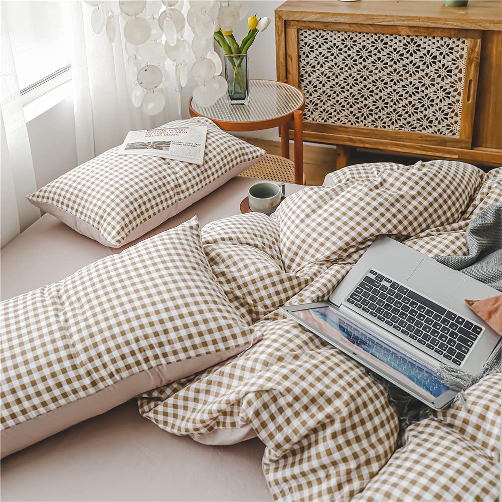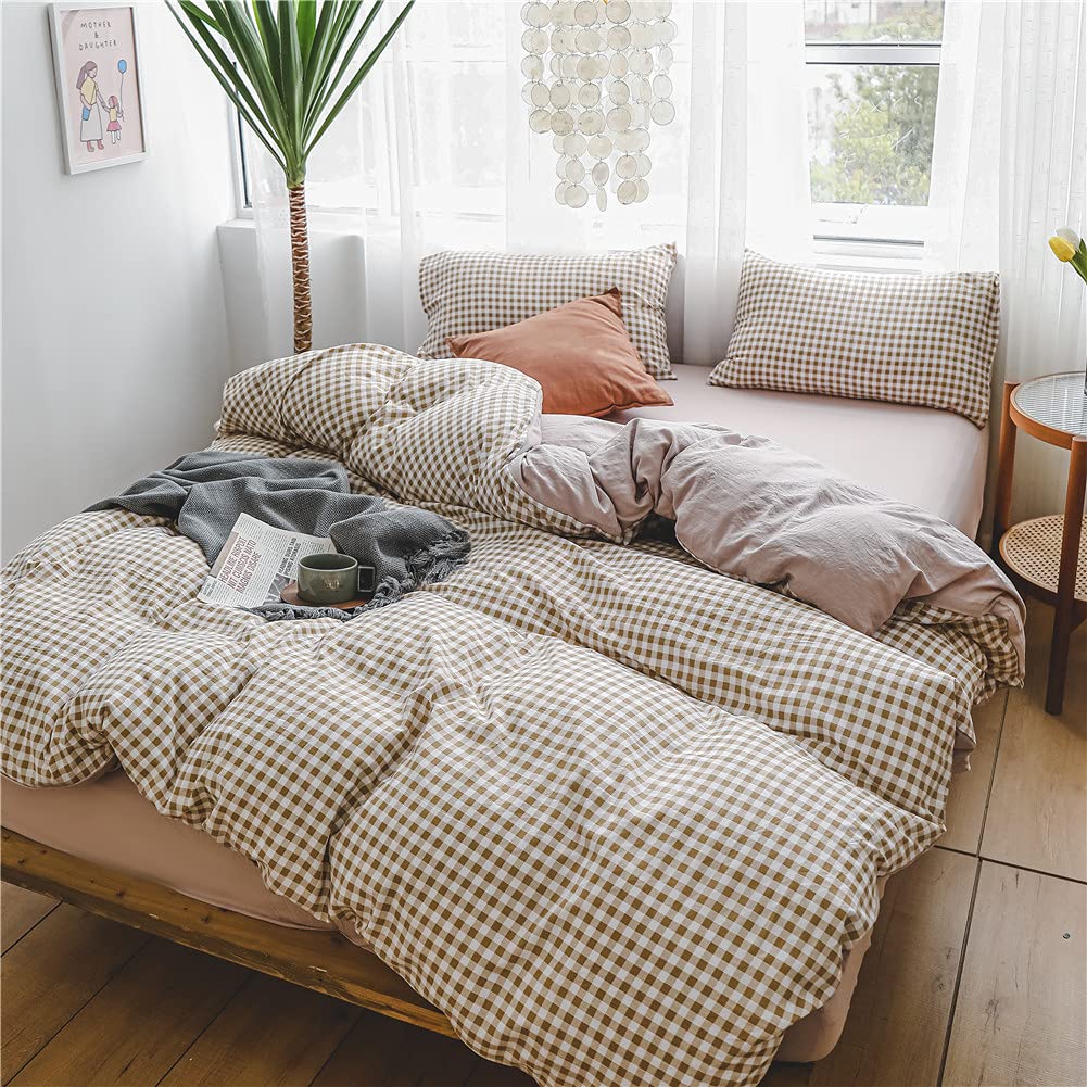 【新着】NSNLGSGC 布団カバー 布団かばー シングル 3点セット ベットカバー ベッド用 single 褐色 ブラウン チェック柄 洋式・和式兼用 洗い替え速乾タイプ 防ダニ | GIGATERA