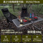 ?【高さ3段階調整】高さも70cm/62cm/55cmで3段階で調整可能、各高さの椅子と同時に使用でき、様々な用途に合わせ、自由自在に高さを変化させることができます。 屋外グリルスタンドテーブルの重量はわずか4.5kgです。軽量で折りたたんだ後のサイズが小さいため、持ち運びや保管が簡単です。また、数秒でインストールすることができます。すばやく折りたたんで、キャリーハンドルで持ち運びできます。