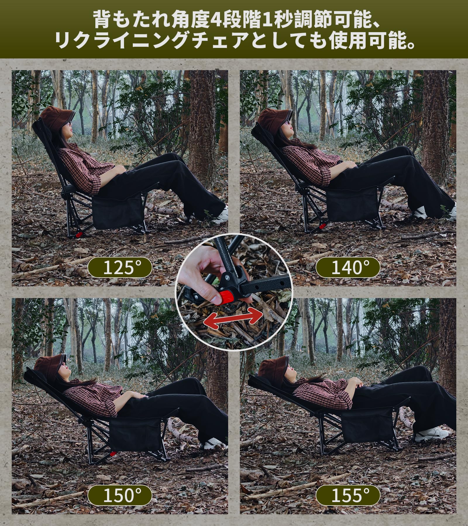 【新着】DesertFox キャンプチェア リクライニングチェア アウトドアチェア 単品/セット 折りたたみ 背もたれ角度4段階調節 コンパクト 1秒設営・撤収 ローチェア 軽量【耐荷重150kg】イス 椅子お釣り 登山 携帯便利 ピクニック レジャー キャンプ用 STY | GIGATERA