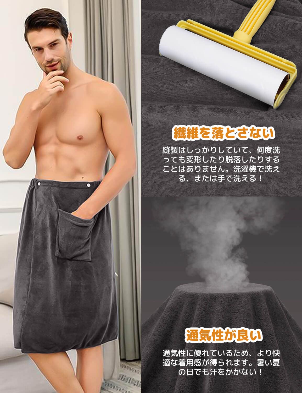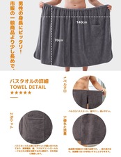 【特価在庫】ラップタオル 大人用 巻きタオル プールタオル メンズ 速乾 大判 バスローブ 柔らかい バスタオル ビーチタオル 吸水速乾 肌触り プール用タオル 70cm丈 暗灰色 | GIGATERA