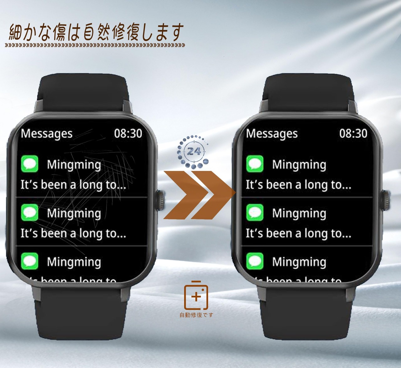 【自動修復】:新しいナノスローバック弾融合技術を採用し、自己復元素材の使用して高い伸縮性と弾力性を誇り、日常のスクラッチから画面を効果的に保護できます。24時間以内に細かい傷を修復し、時計の画面を効果的に保護し、微小な傷、自動修復することができる。