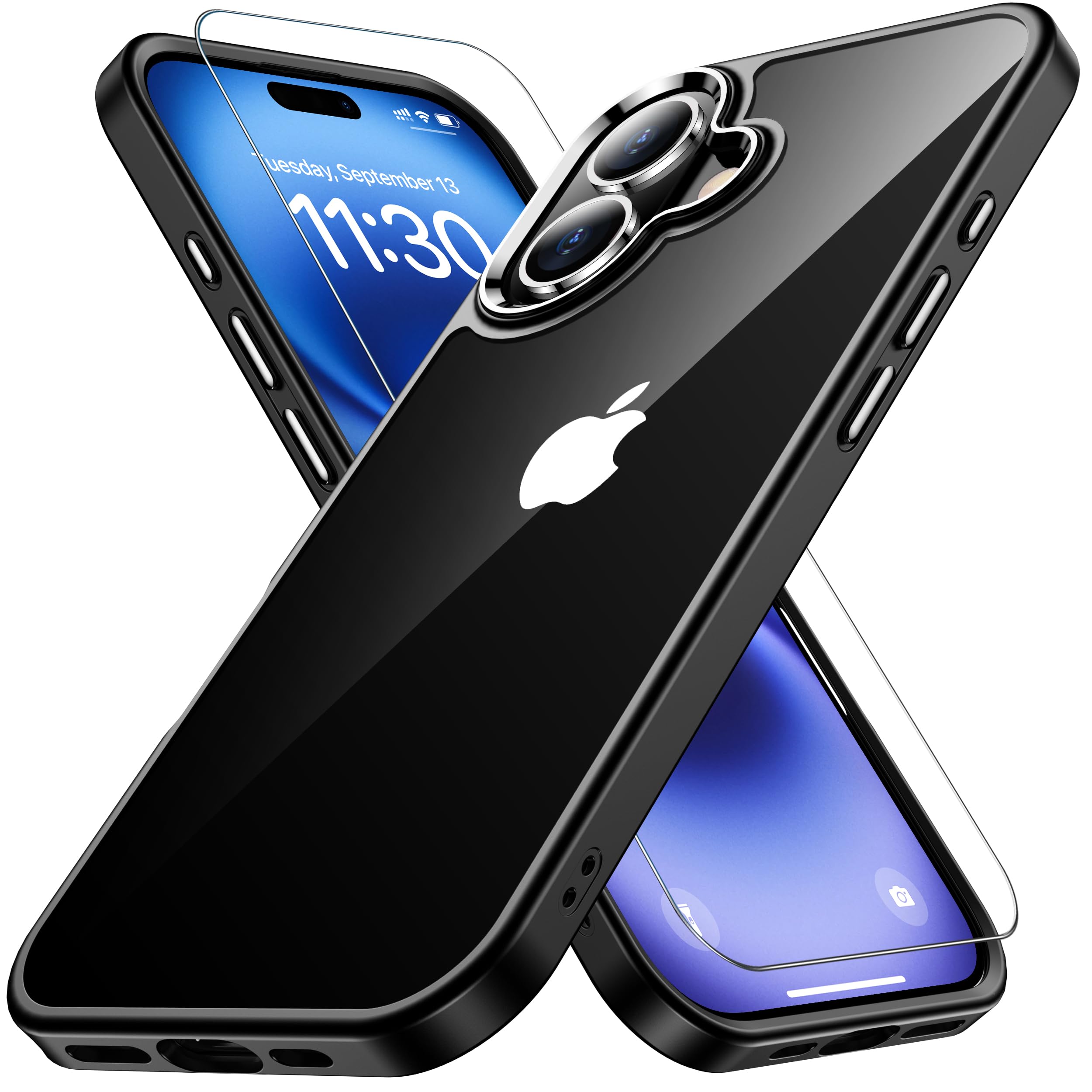 iPhone16 ケース ブラック 耐衝撃 ガラスフィルム保護付き アイフォン16ケース 米軍MIL規格 耐久性 黄ばみ防止 アイホン16 ワイヤレス充電対応 あいほん16 スマホケース SGS認証 あいふぉん16 カバー 6.1インチ 黒 ストラップホール付き gogorelax