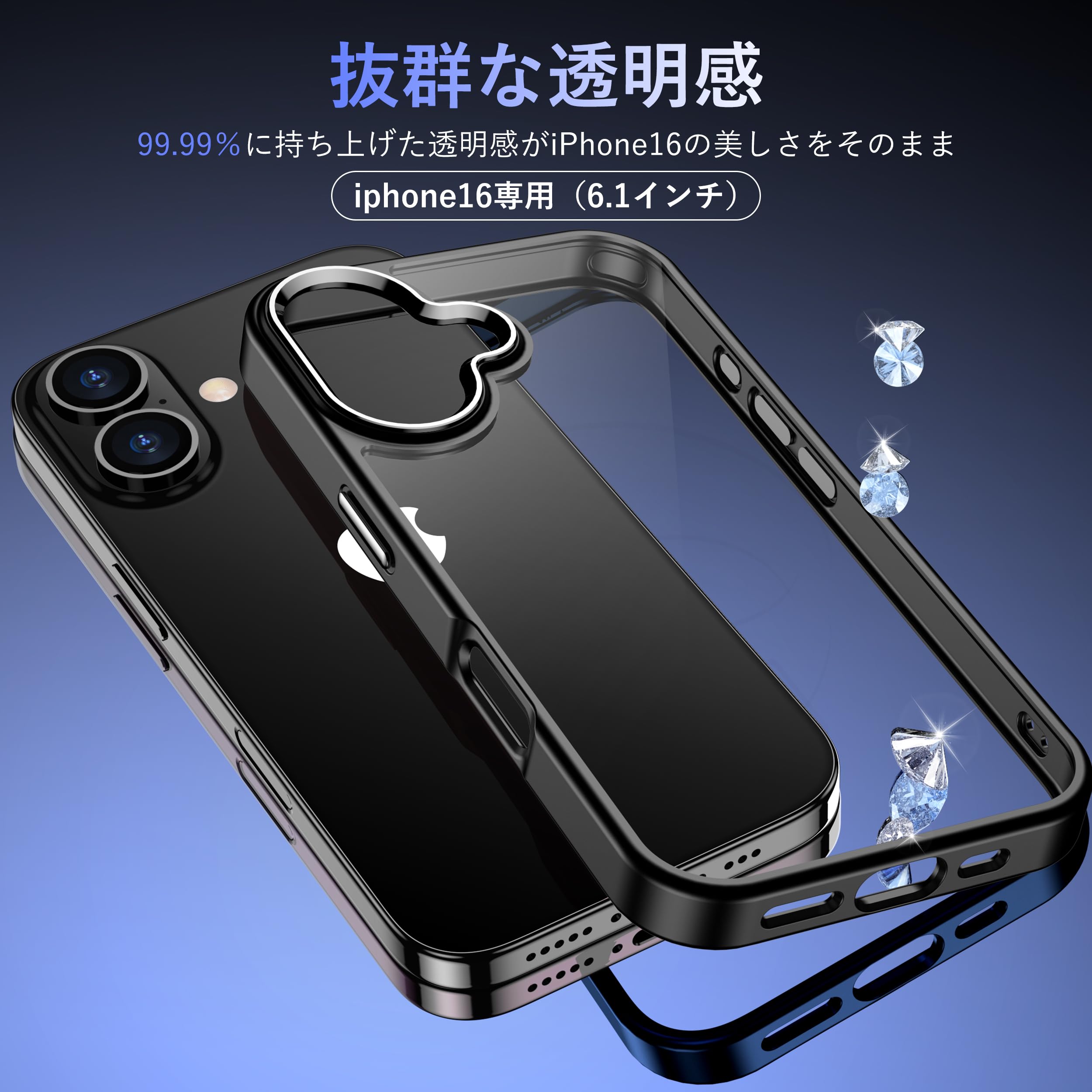【高い透明度・黄変に強い】高解像度素材を用いた超高透明度のクリアケースは、いPhone16のリアルな色と高級感を鮮明に表現し、本来の美しさを楽しむことができます。また、最新の黄変防止技術を採用することで、ケースを長時間使用しても鮮明で透明性を保ち、日常使用時の指紋や油汚れなどによる損失を軽減することができます。