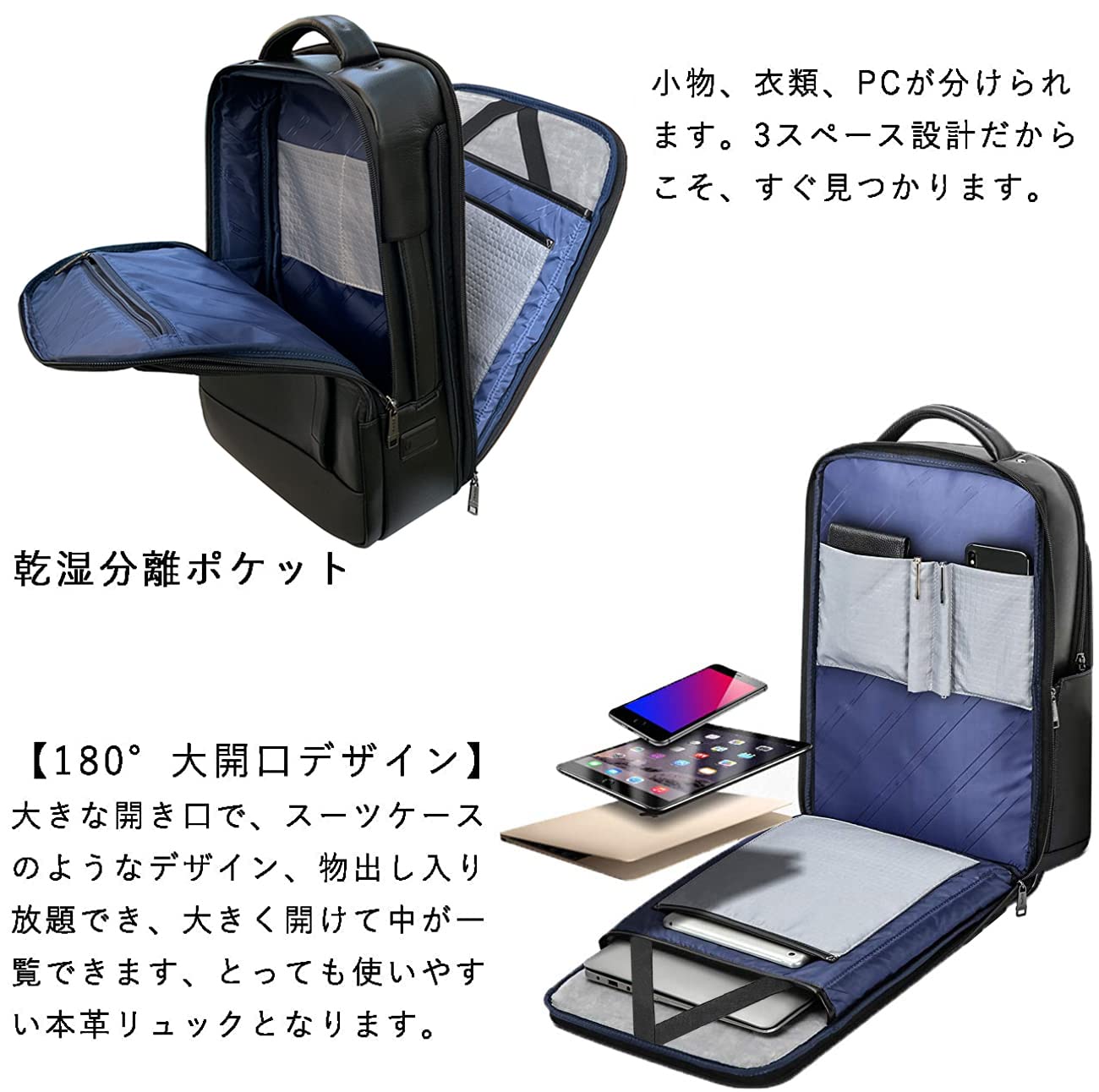 [Ariga] リュック メンズ 本革 牛革 スクエア 15.6インチPC収納 A4 レザー 防水 大容量 リュックサック バックパック ビジネスリュック 人気 通勤 出張 旅行