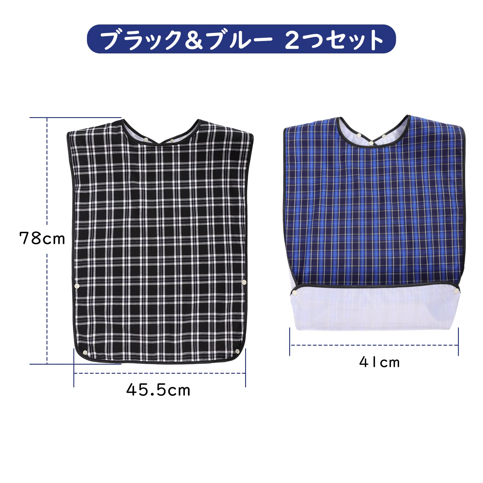 【数量限】[Housolution] 介護エプロン 2枚セット 食事エプロン 大人用 介護用エプロン 高齢者 防水 汚れ防止 丸洗い可 繰り返し使用 ポケット付き ブラック&ブルー | GIGATERA