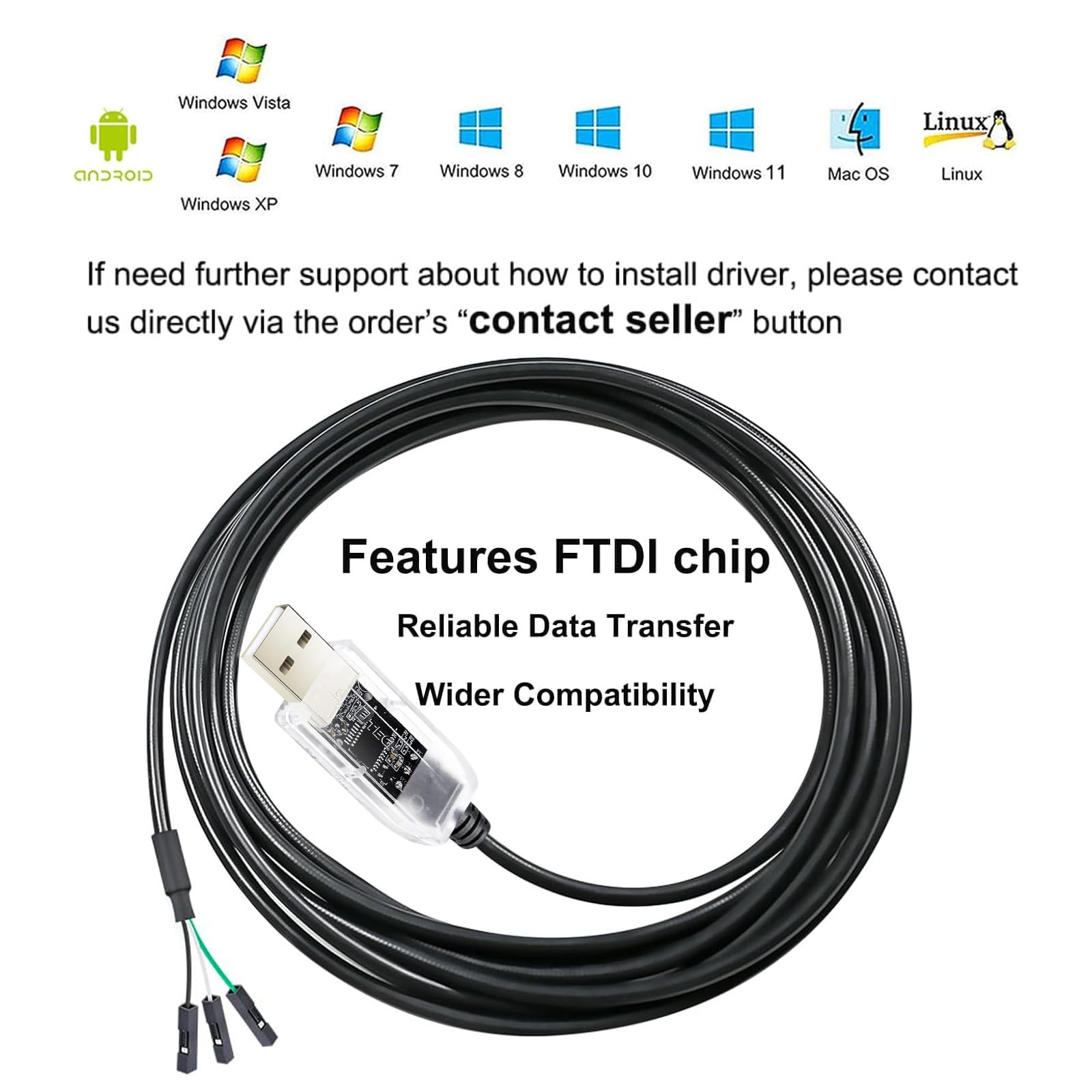 DTECH 3.3V 1.8m USB TTL シリアル 変換 ケーブル FTDI チップセット 3ピン 2.54mm ピッチ メス コネクタ FT232RL USB TTL シリアル コンバーター ケーブル 互換Windows 11 10 8 7 XP Linux Mac (1.8m)