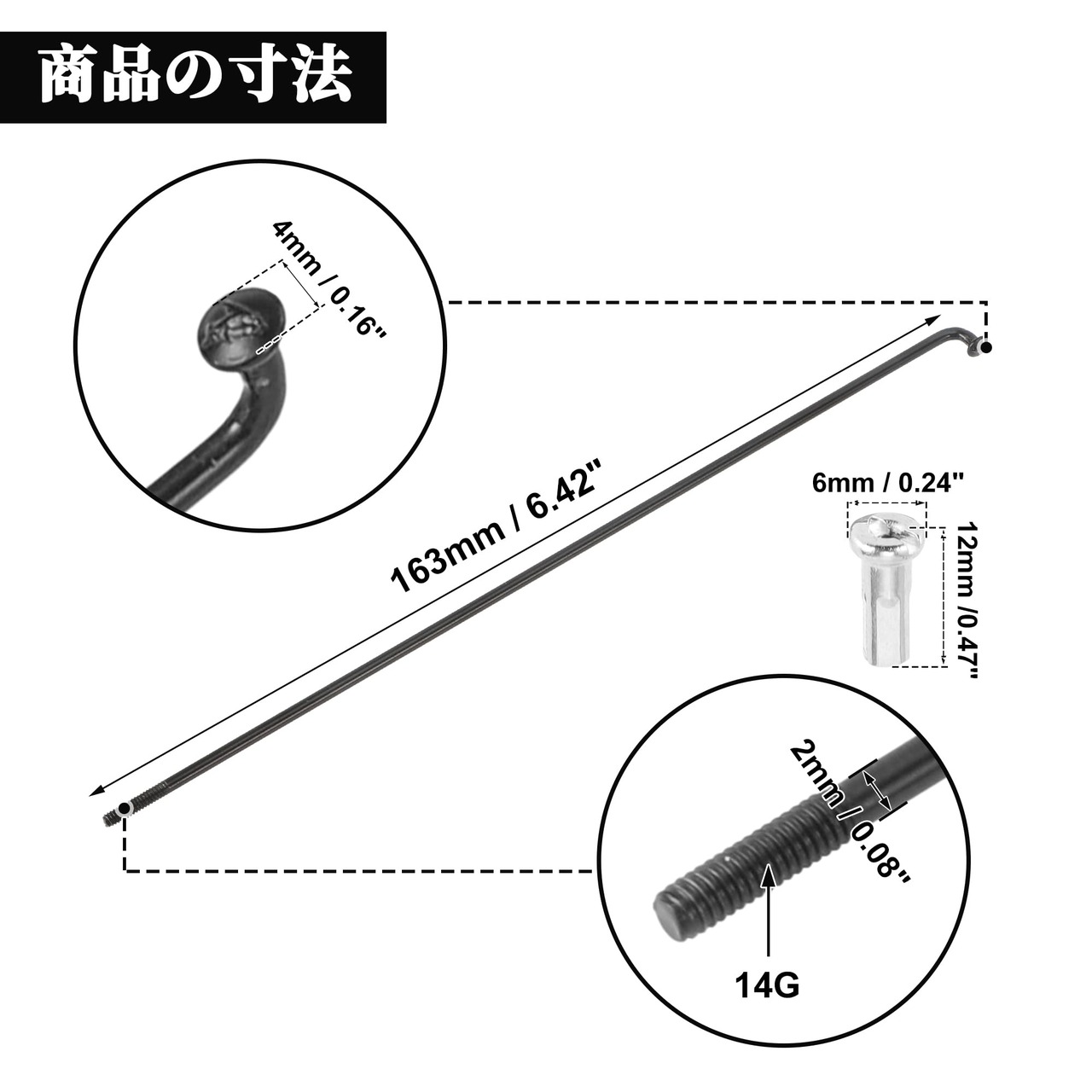BULLSPANN 自転車スポークキット 14G 163mm 自転車ホイールスポーク 14G 12mm ニップルカーボン鋼 ブラック 36個
