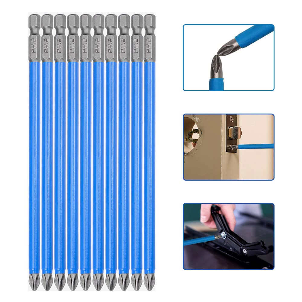 Wolfride ドライバービット セット 2番 十字? 150mm長 いんぱくとドライバービット S2合金鋼 六角軸 プラスビット 電動ドライバービット ロング ビット 滑り止めデザイン 電動工具 10本セット
