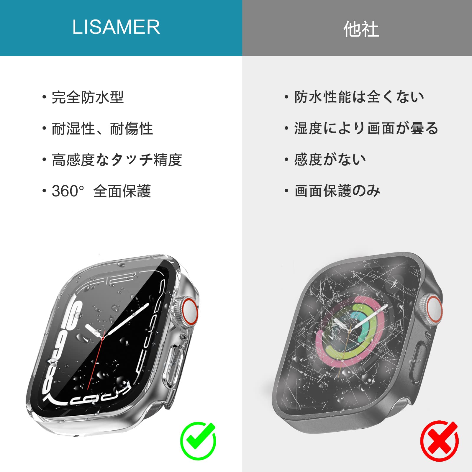 【セール】LISAMER 対応 Apple Watch ケース Series 11/10/9/8/SE/7/6/5/4 44mm アップルウォッチ用 ケース 防水 一体型 新デザイン 3D直角エッジ 超薄型 PC+ガラス素材 高透過率 対応 Apple Watch カバー 全面保護 装着簡単 高耐久 耐衝撃 クリア | GIGATERA