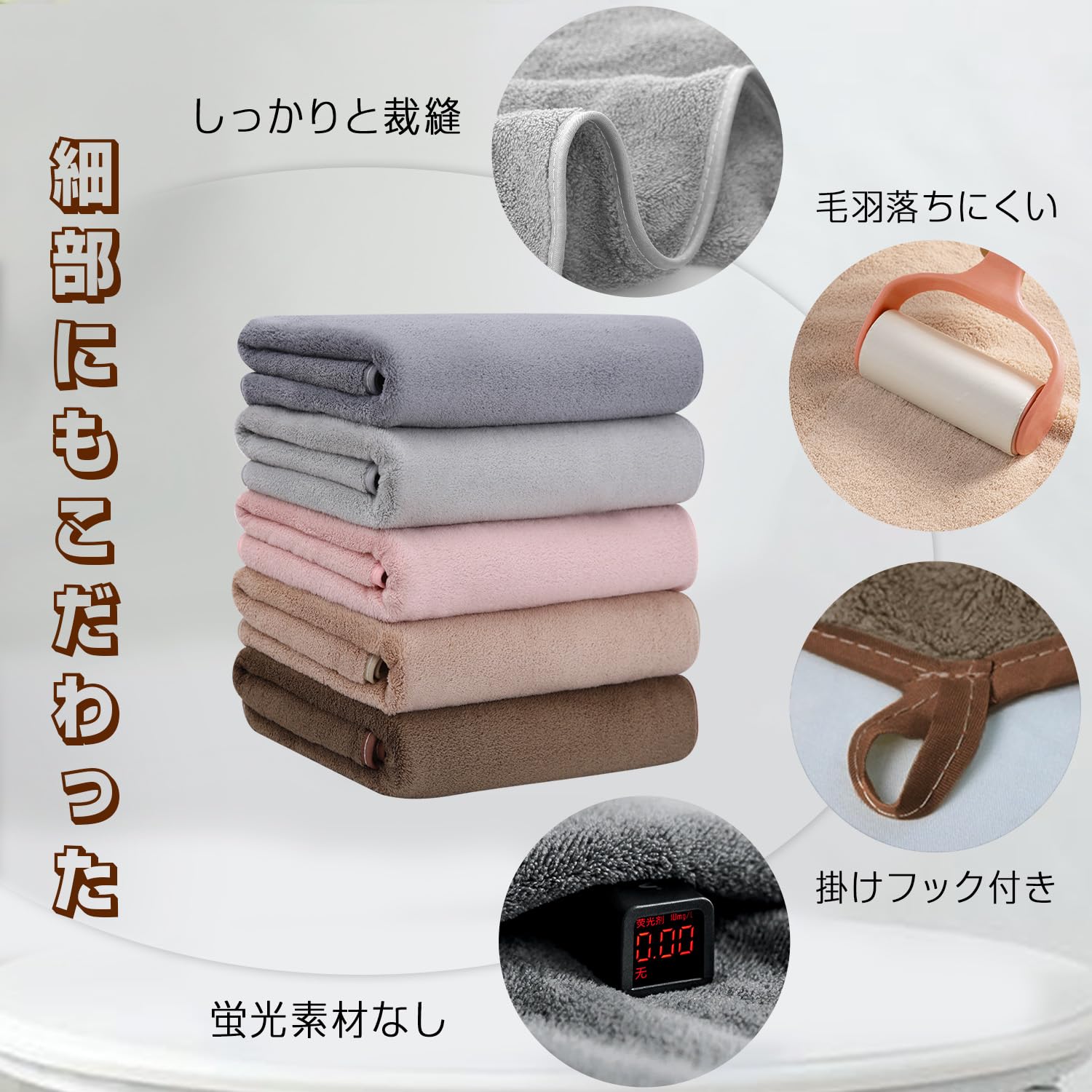 バスタオル マイクロファイバー タオル ふわふわ ホテル仕様 大判 5枚セット 60X120cm 瞬間吸水 速乾 耐久性 (5色)