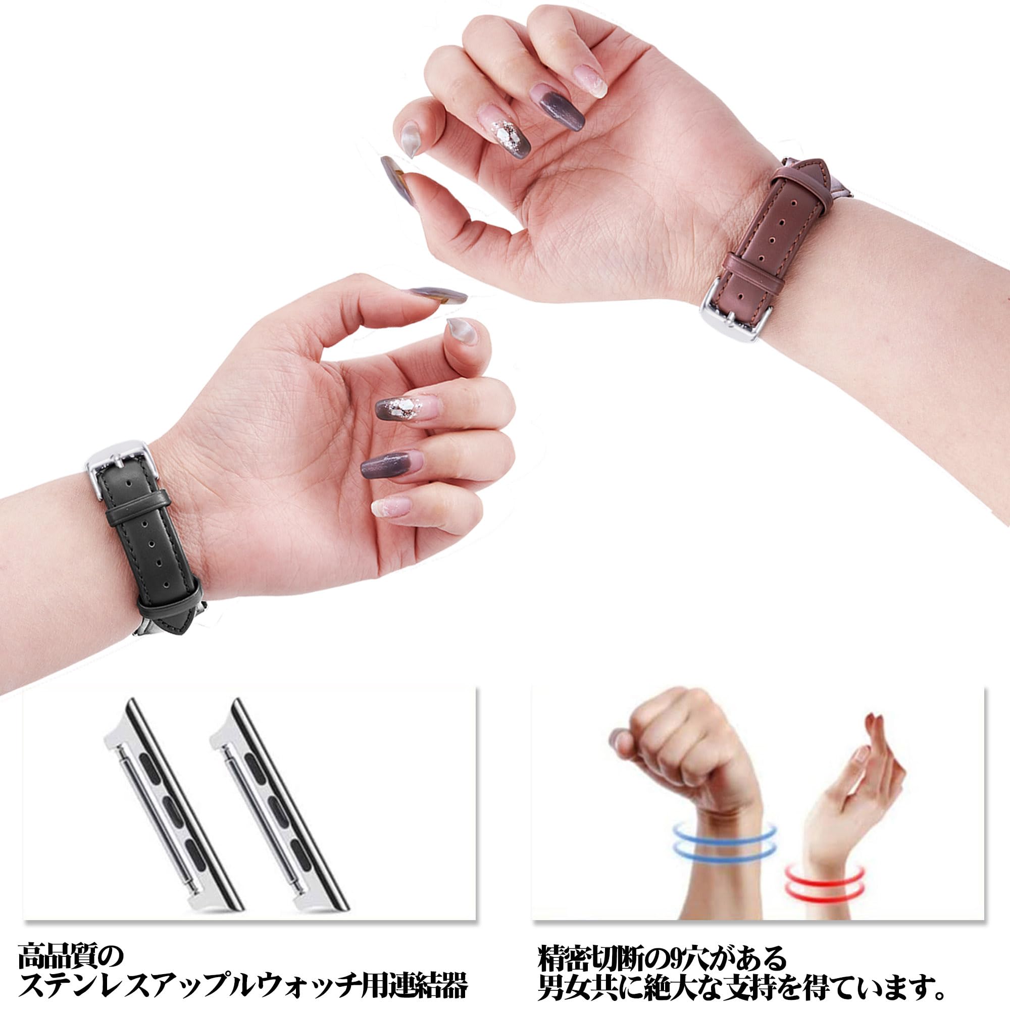 【手首周り仕様】160mm??220mm 精密切断の9穴がある、男女共に絶大な支持を得ています。年齢を問わずお付け頂けるので、年配の方へのギフトにもいいです 。 【対応機種】アップル ウォッチ バンド44mm/45mm/46mm/49mmはApple Watch Ultra1/2/3 (49mm), Series11/10 (46mm), Series9/8/7 (45mm), Series6/5/4 SE3/SE2/SE (44mm) 全モデル対応しています.