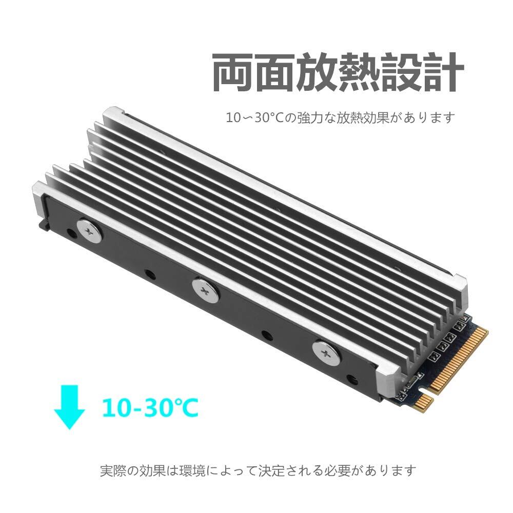 【両面冷却】-アルミニウム合金-溝設計、10°C-30°Cの冷却効果により、放熱面積を大幅に拡大(環境によって異なります)、M.2 SSDを安全な温度に冷却して回避過熱と調整、コンピューターのパフォーマンスの向上。