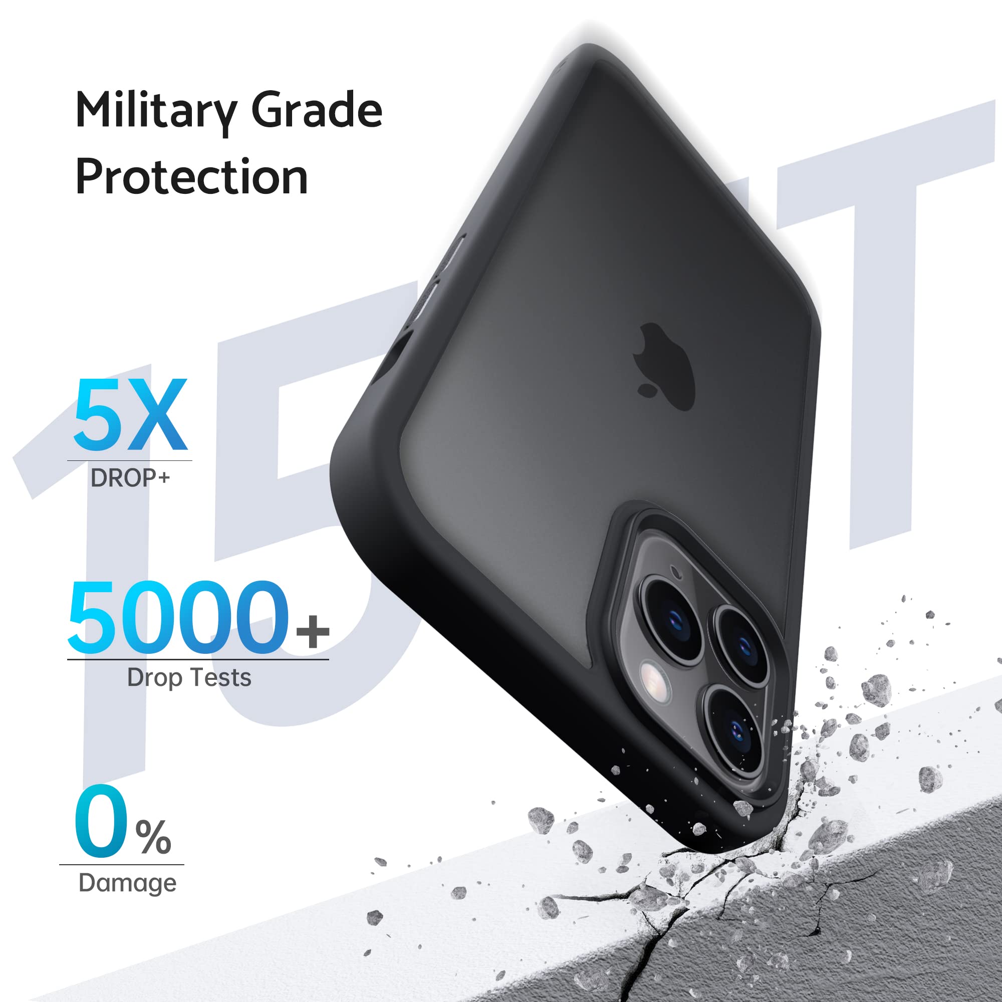 【特価在庫】Anqrp iPhone11 Pro Max 用 ケース 半透明 耐衝撃 滑り止め 米軍MIL規格 指紋防止 マット感ケース ストラップホール付き ワイヤレス充電対応 スマホケース アイフォン 11Pro Max カバー 6.5 インチ ブラック | GIGATERA