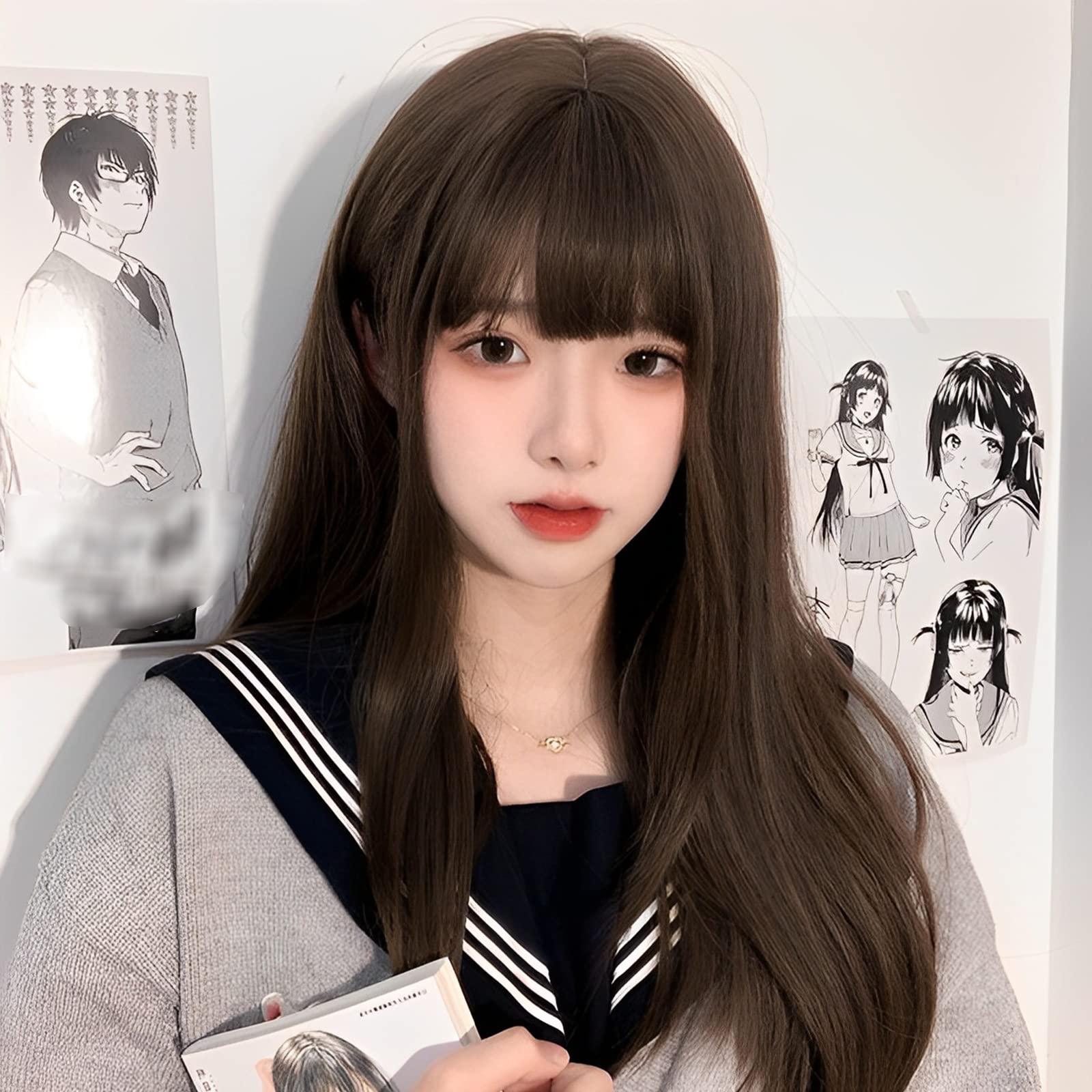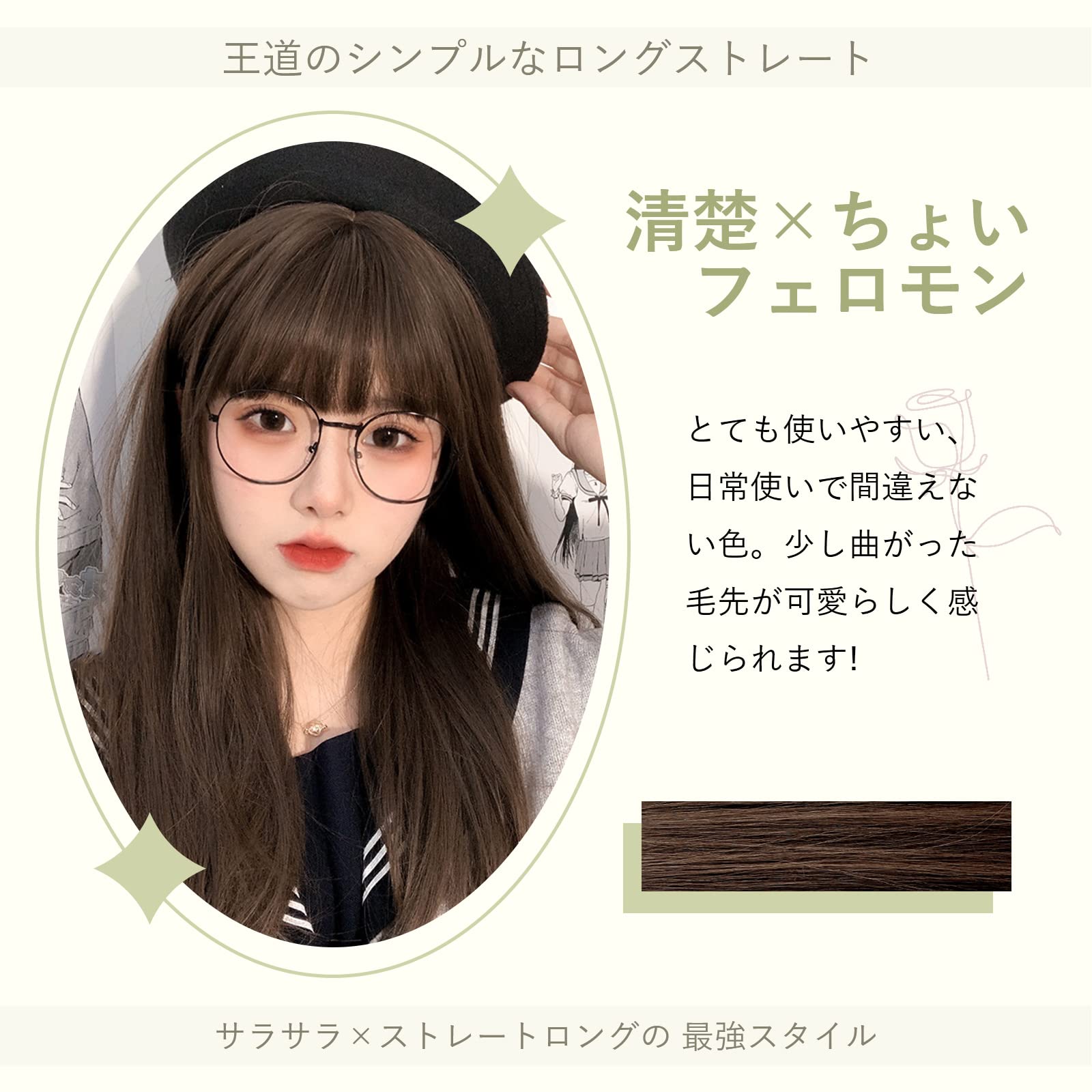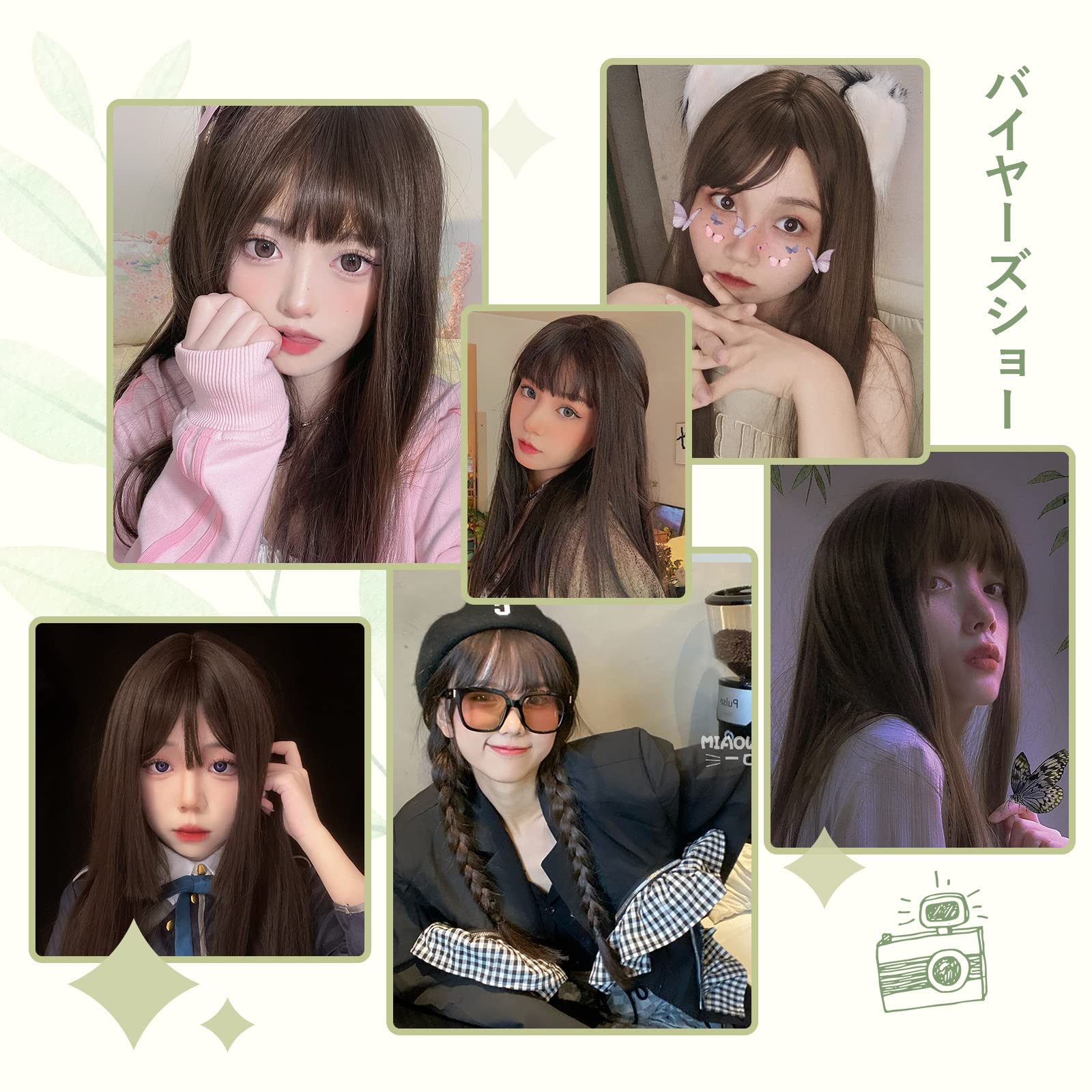 HAIRCUBE ウィッグ ロング ストレート かつら フルウィッグ 自然 コスプレ ぱっつん前髪 小顔 人気 耐熱 原宿系 ファッション ロリータ ネット(ダークブラウン)