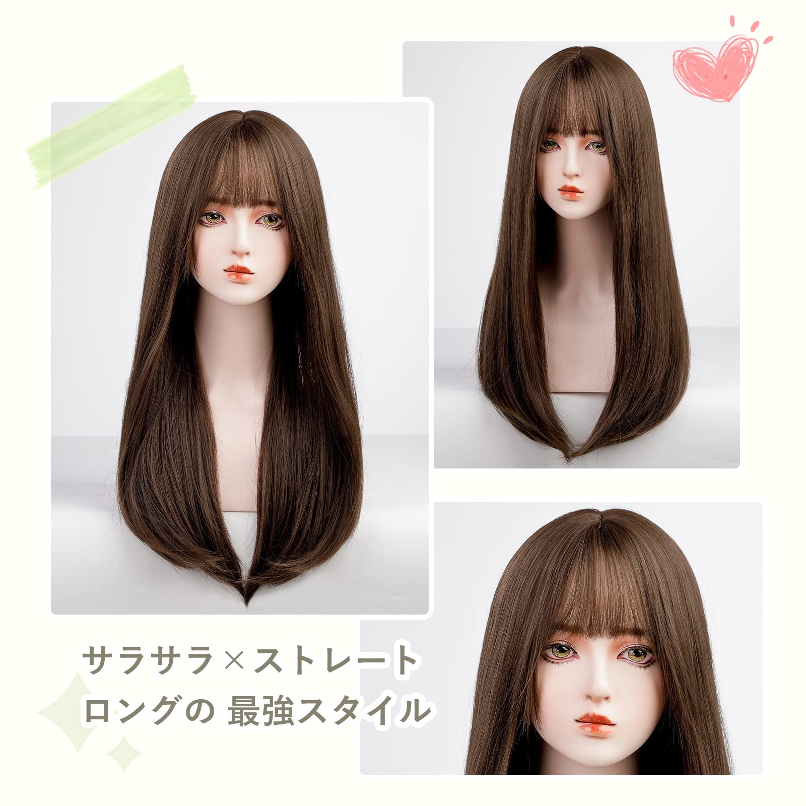 【セール】HAIRCUBE ウィッグ ロング ストレート かつら フルウィッグ 自然 コスプレ ぱっつん前髪 小顔 人気 耐熱 原宿系 ファッション ロリータ ネット(ダークブラウン) | GIGATERA