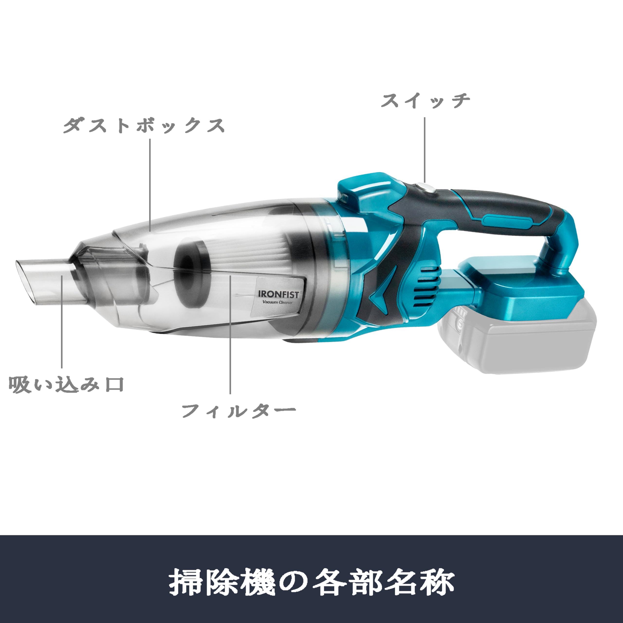 【注意】 バッテリー無し!!!コードレス掃除機のみ!!! IRONFISTコードレス掃除機はMAKITTA 18V電池にマッチングします:BL1820 BL1840B BL1820B BL1815B BL1835 LXT-400 BL1845B BL1845 BL1830B BL1850B BL1860等。もしバッテリーがあったら、お金を節約できます