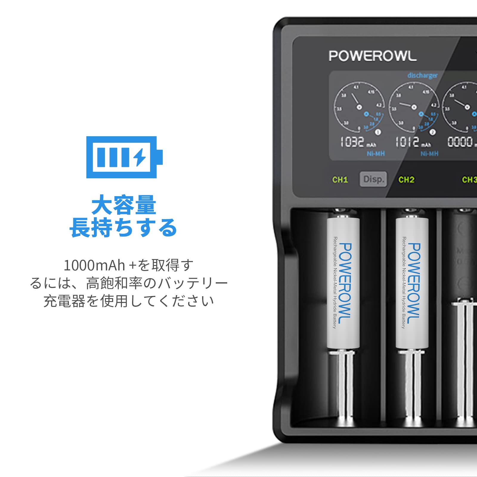 Powerowl単4形充電式ニッケル水素電池16個セット 大容量 自然放電抑制 環境保護(1000mAh、約1200回循環使用可能)