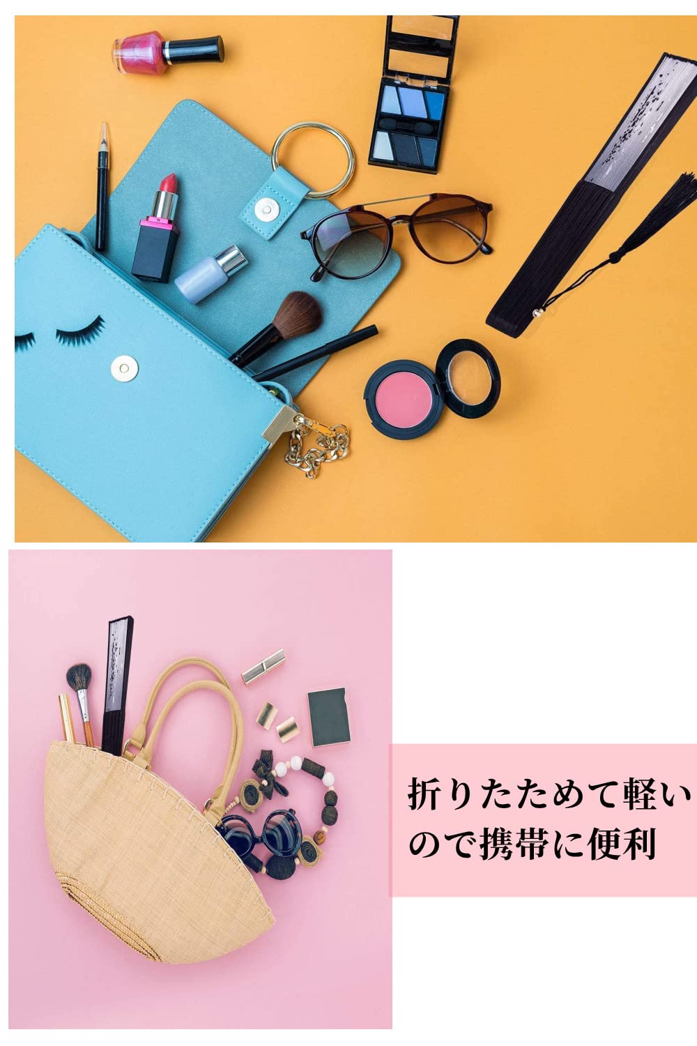 【持ち運び便利】コンパクトに折りたたみ式、骨25本で重さが約29gだけで着物や浴衣などの帯に挿すとか鞄に入れるとか邪魔にならなくて持ち運びやすいです。