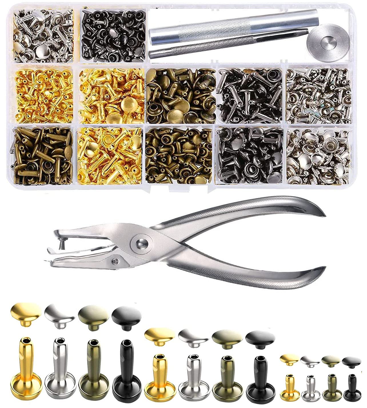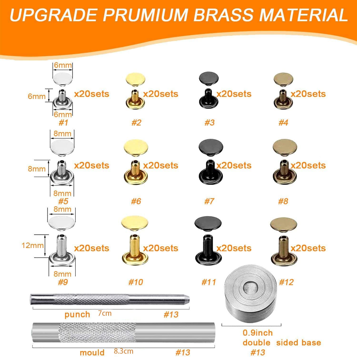 【使いやすい】このカシメ金具は手芸、修理用スタッズ セットです。手芸用スタッズセットで、6/8/12mmのスタッズを取り付けるのに便利な工具とスタッズのセットです。使い方も簡単なので、初心者からプロまで、革製品やハンドメイド作品のデコレーションに気軽に使えます。