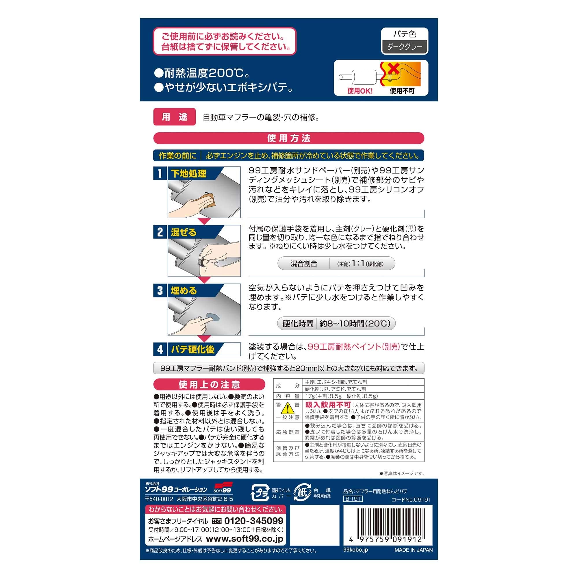 ソフト99(SOFT99) 99工房 補修用品 マフラー用耐熱ねんどパテ 自動車マフラーの亀裂・穴の補修 09191