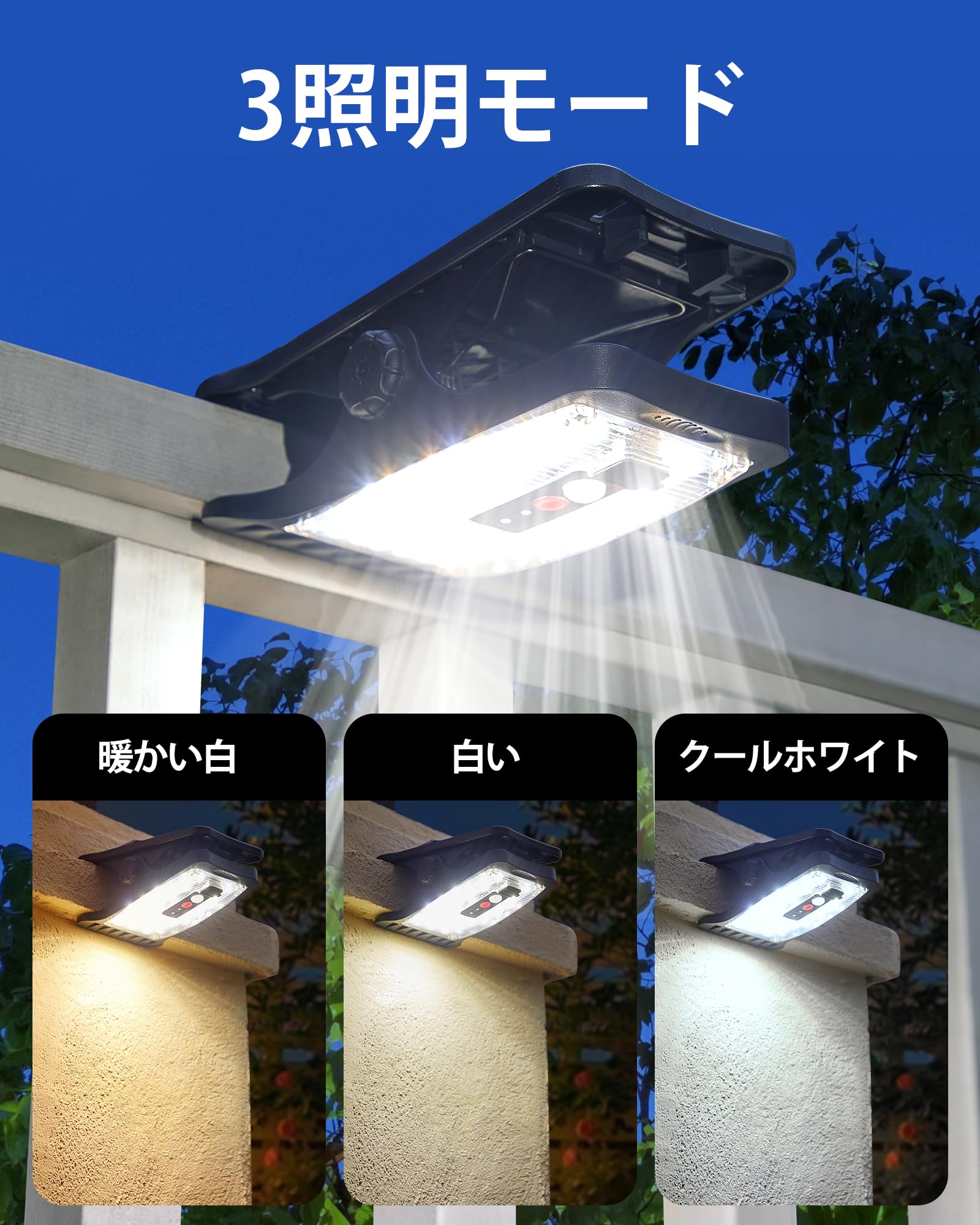 70LED クリップ式 センサーライト 屋外 ソーラー 人感 IP64防水 3種類設置方法 タイマー機能 USB充電可 3色切替 調光機能 玄関 駐車場 ガーデン 柵 壁 地震 津波 台風 防災対応 キャンプ ライト キャンプ用品 吊り下げ み式 防災 停電 節電対策 超高輝度