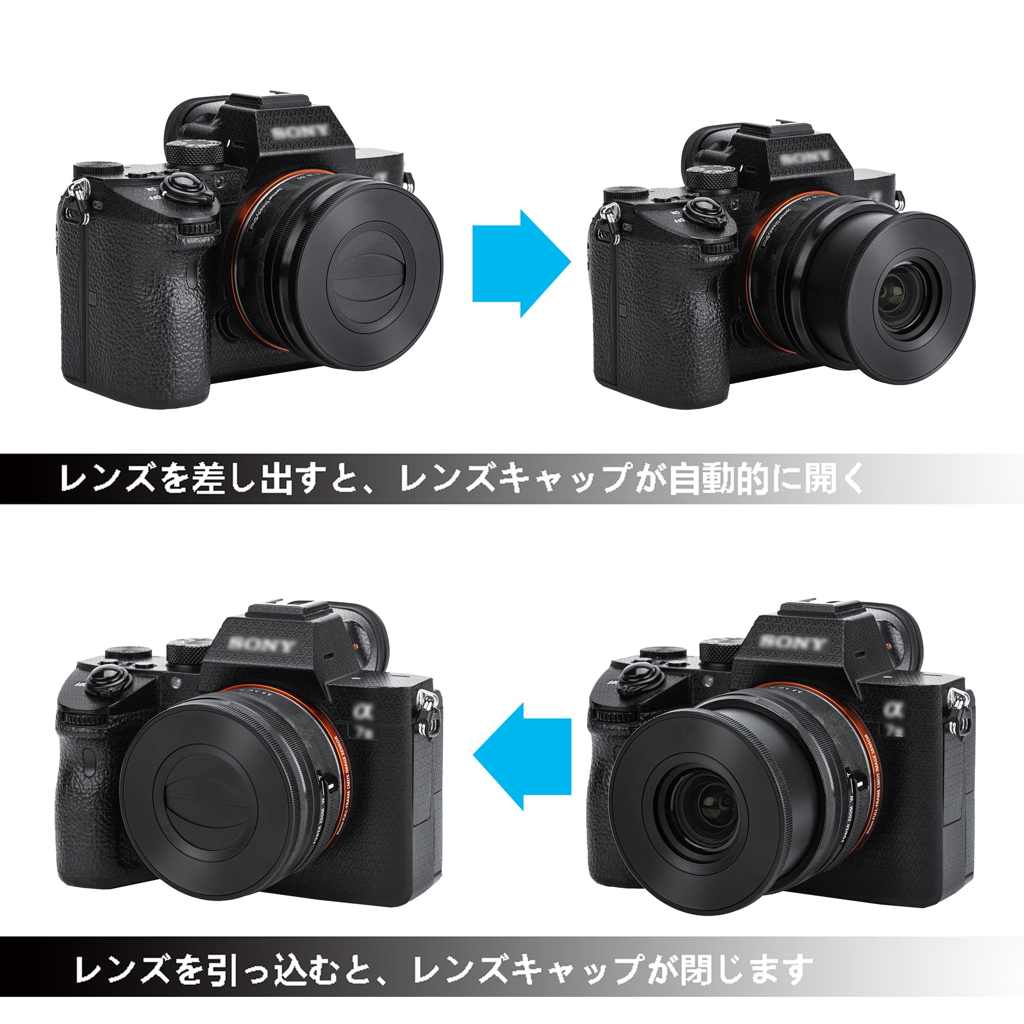 JJC 自動開閉式レンズキャップ はSony PZ 16-50mm F3.5-5.6 OSS E マウント レンズ 適用します。
