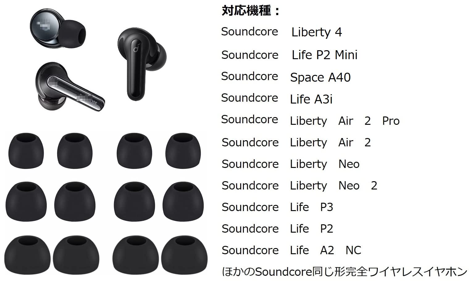 【対応機種】AN-KER Soundcore Liberty 4用 ,Soundcore Life P3 / P2 Mini 用, Liberty Neo 2 等イヤホン用、他のAN-KER Soundcore同じ形TWSカナル型イヤホン用。