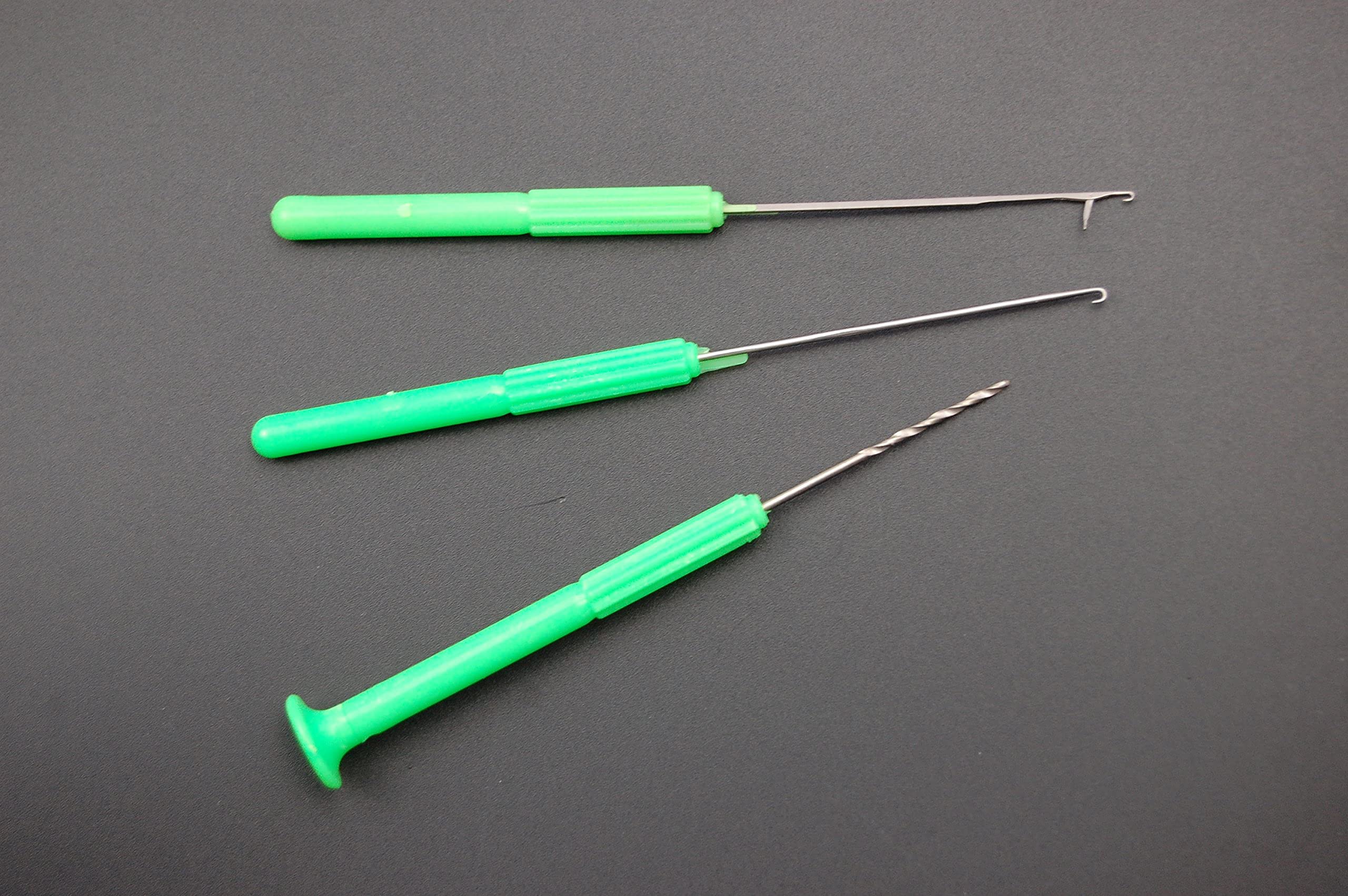 釣りニードル ボイリー 鯉釣り タイラバ仕掛け自作 クイック交換 アシストニードル ドリル針 フック外し ライン通し3点セット 柄付 グリーン