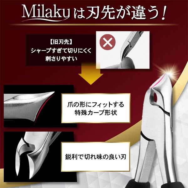 グレードアップしたワンランク上の特殊カーブ形状で、巻き爪・固い爪専用なので切れます。