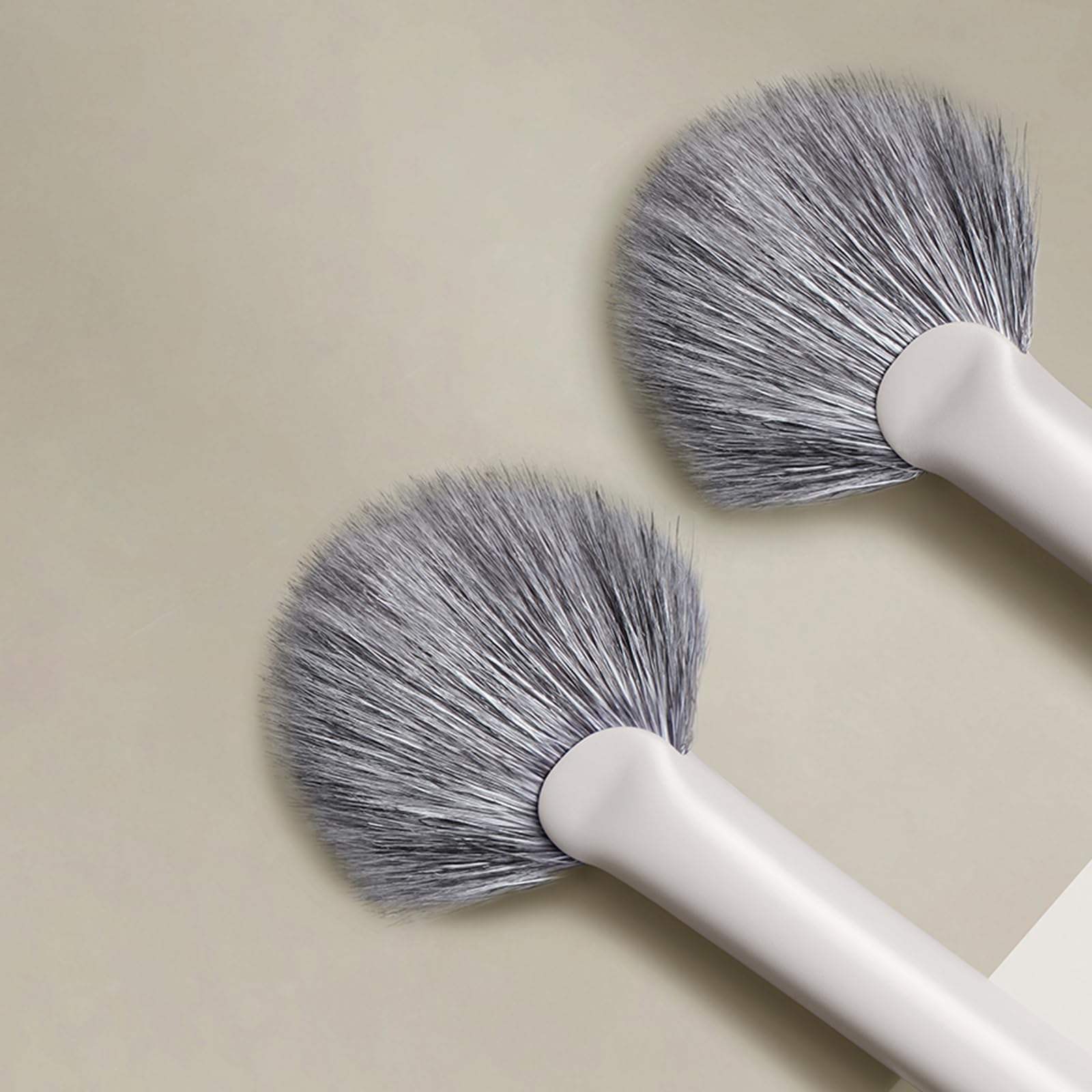 ROWNYEONは化粧筆の専門ブランドで、様々な種類のメイクブラシを製造しております。顔のハイライトの応用ために特別に扇形設計された、パウダーを付着しやすく、頬、鼻など高く見せたいところにやさしくなじませます、チークブラシとしても使えます。メイクの仕上げ段階でブラシで顔を軽く払って余分なパウダーを落とすこともできます。