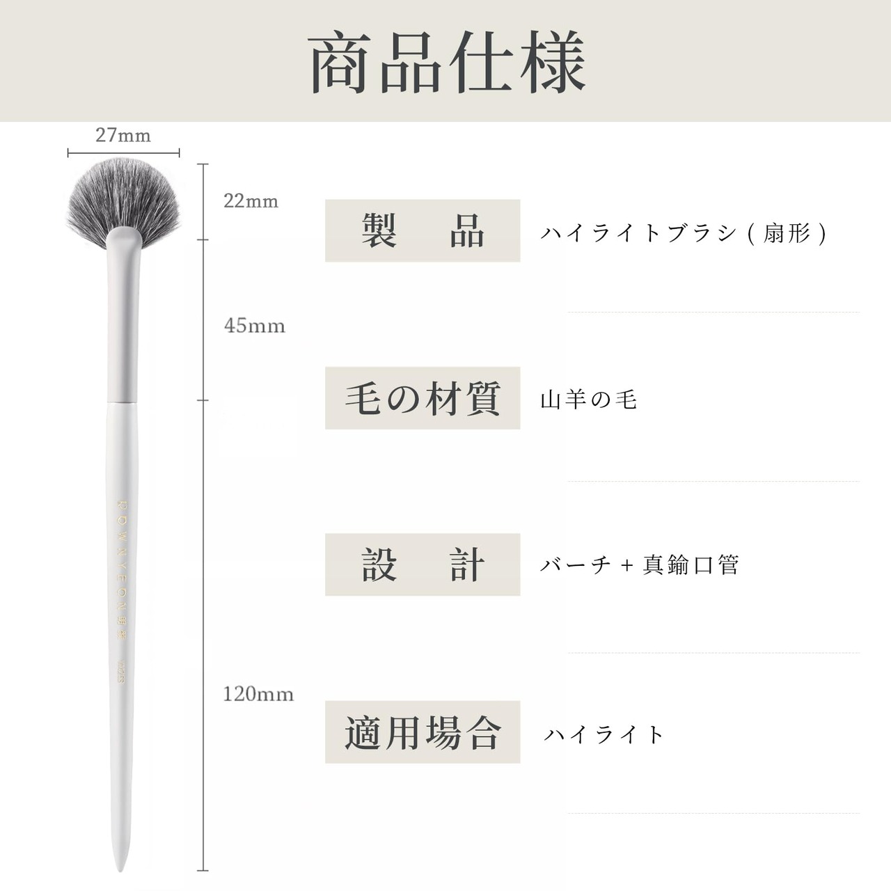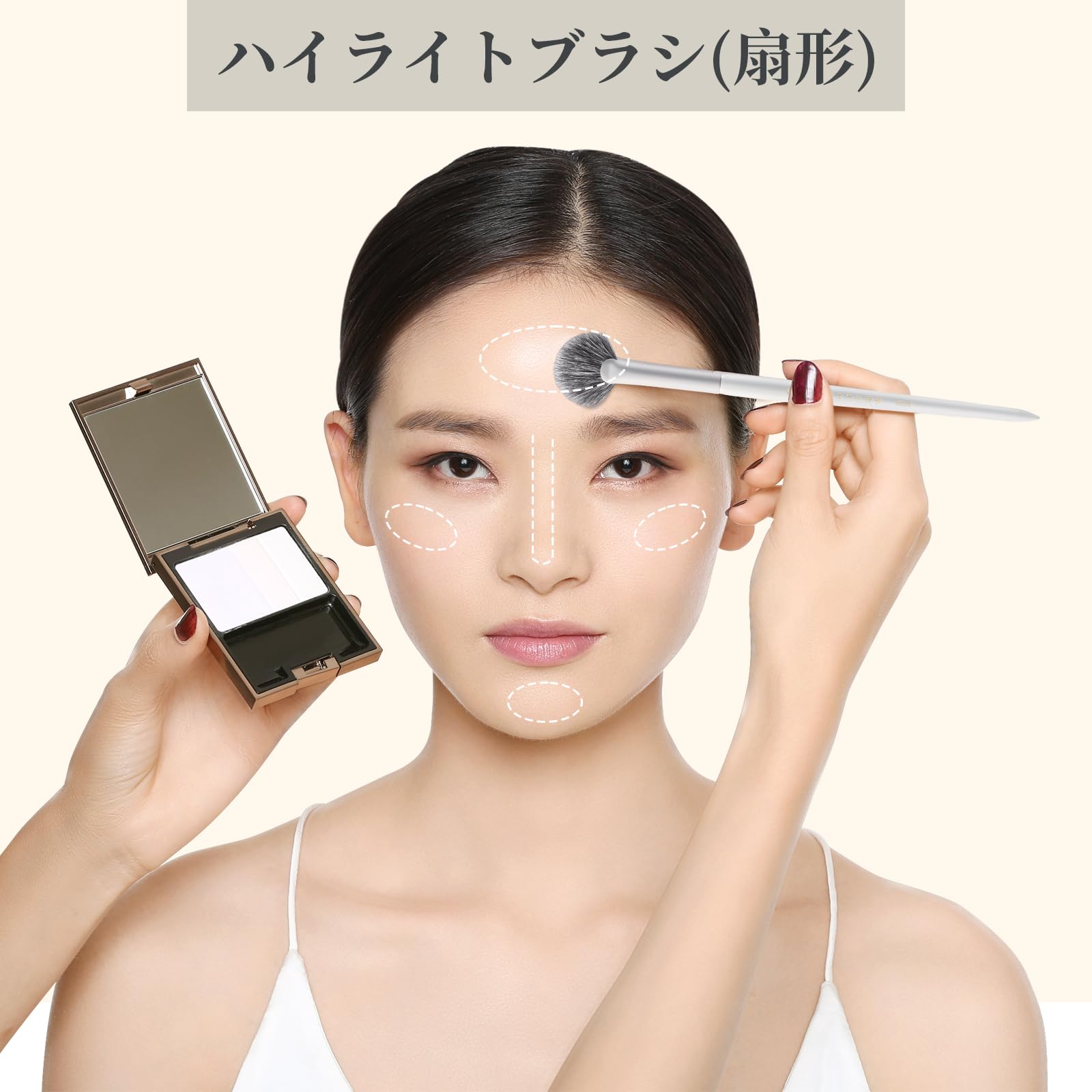 ROWNYEON ハイライトブラシ 扇形 メイクブラシ 天然毛 超柔らかい 肌に優しい 持ち運びやすい 化粧道具 メイク 化粧筆 化粧ブラシ YM263