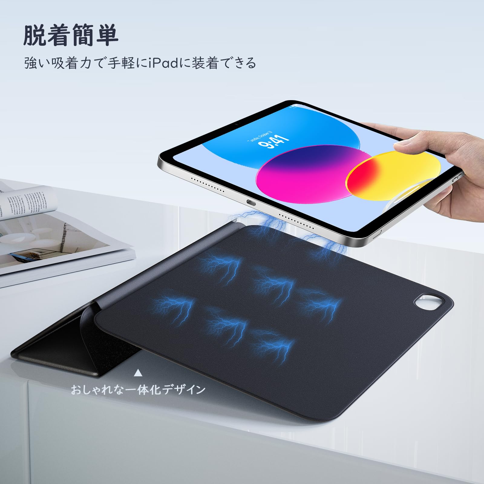 「磁気吸着仕様」 バックケースには磁石が内蔵されて、アイパッド11世代/10世代本体をケースに装着する必要なしで、直接に吸着することができて、ピッタリ組合して取付には非常に便利なデザインになっております。