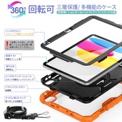 【数量限】Timecity iPad 第11/10世代 ケース (2025/2022)対応 耐衝撃 iPad 11世代/ 10世代 ケース 360度回転スタンド 保護フィルム付き 傷つけ防止 頑丈 耐久性 ハンド&ショルダーストラップ付き ペン収納 肩掛け 多機能 工事 現場 子ども iPad 10.9インチ カバー 落下保護 1メートルテスト (オレンジ) | GIGATERA