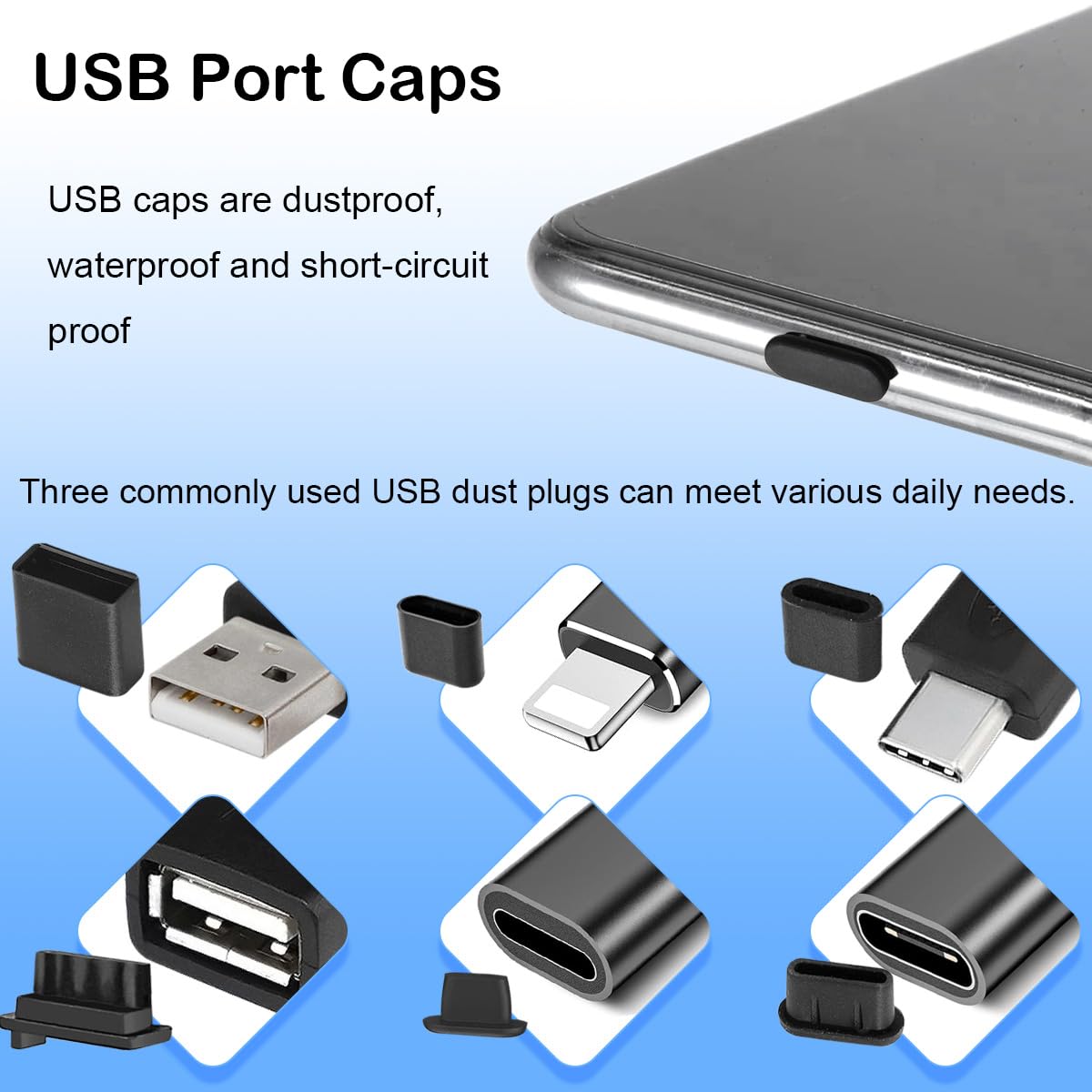 パッケージ内容: USB オス キャップ 10 個、USB メス キャップ 10 個、iPhone用 充電オス キャップ 10 個。 iPhone用 充電用メス キャップ 10 個、USB C オス キャップ 10 個、USB C メス キャップ 10 個。3 つの一般的な USB ダスト プラグは、さまざまな日常のニーズに対応します。10 個のクリーニング ブラシで、隙間のほこりを取り除くことができます。