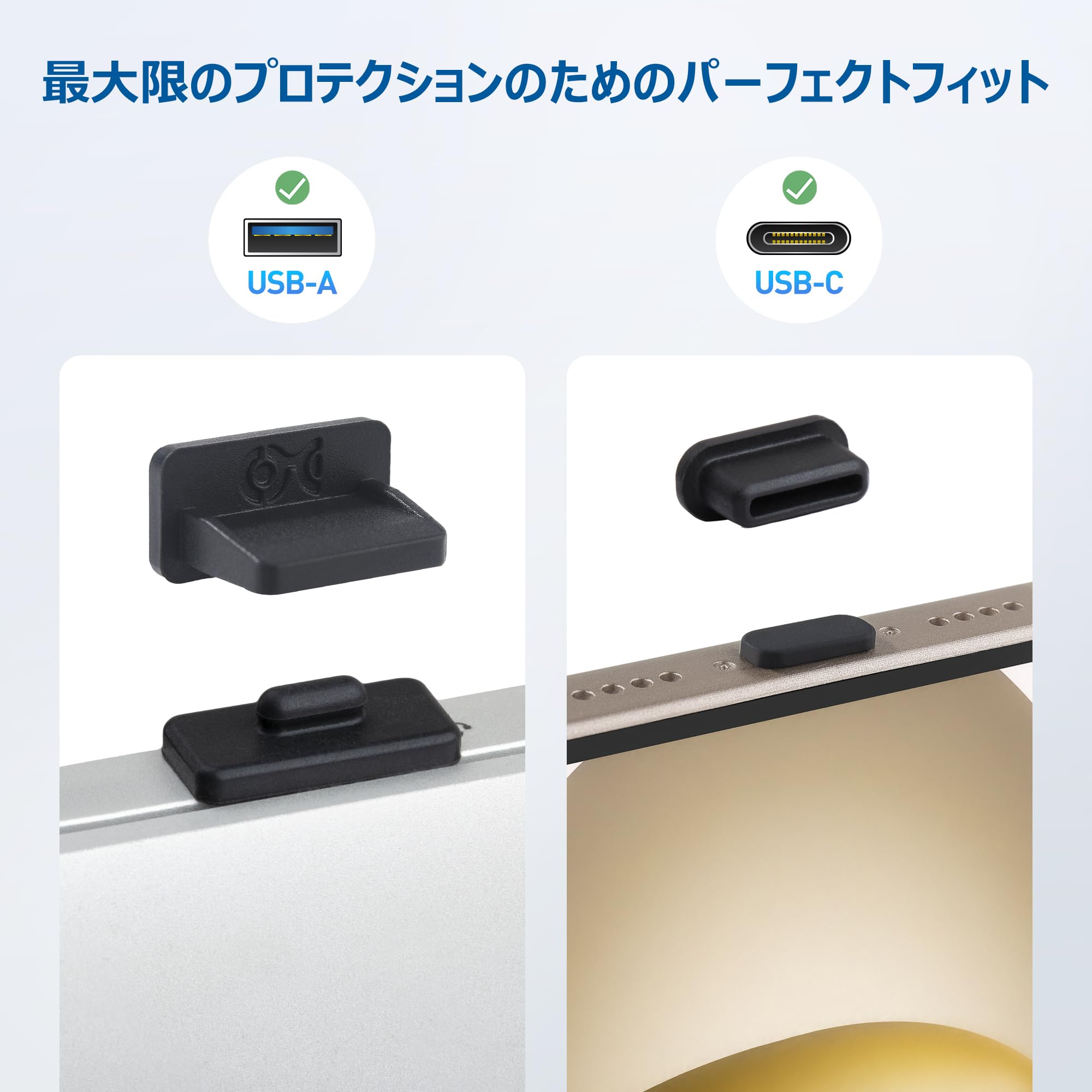 【ぴったりフィットしてしっかり保護】各USB C カバーおよびUSB 保護キャップは、デバイスのポートにぴったりとフィットし、しっかりと装着できます。端子カバーは取り付けや取り外しが簡単で、タイプC 保護キャップとして素早くアクセスできます。