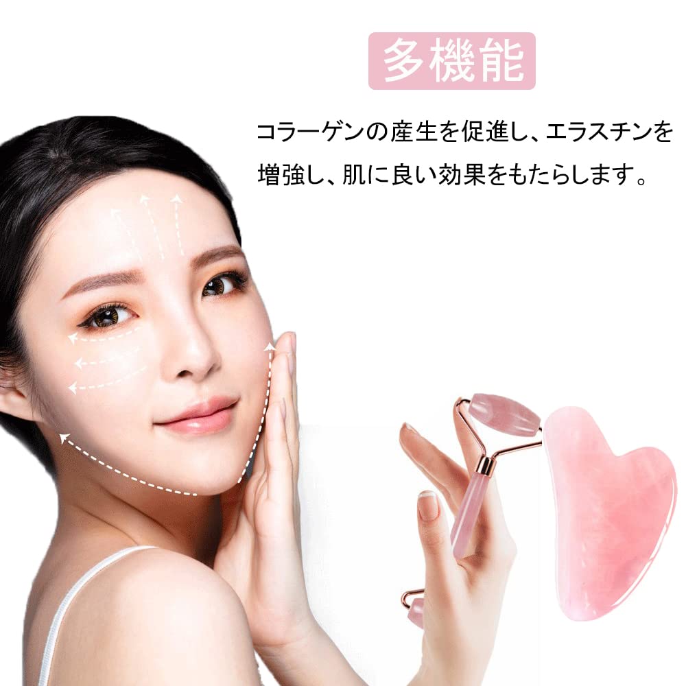 【素材】100%天然のローズクオーツを採用し、人体に有益な微量元素を多く含みます。しわ防止、老化防止、目の下の暗さを軽減など、肌と健康を改善することができます。