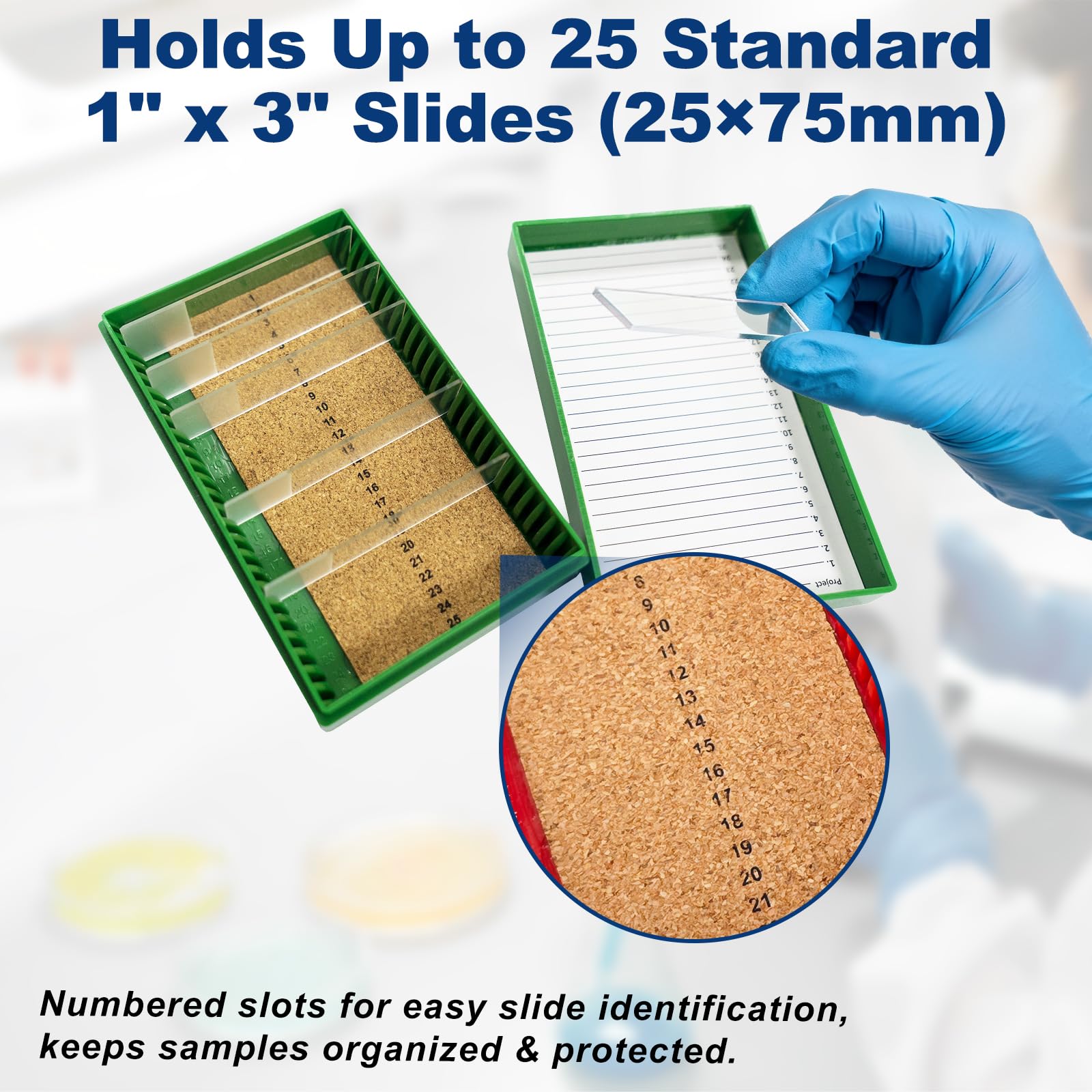 標本プレパラート ケース 箱 プラスチック製 顕微鏡スライド収納ボックス 25枚収納顕微鏡スライド スライド収納ケース 再利用可能 オーガナイザー スライド保存容器 プラスチック 実験室用 収納用品5点コルク裏地ー付き 25mm × 75mm マイクロスライド用