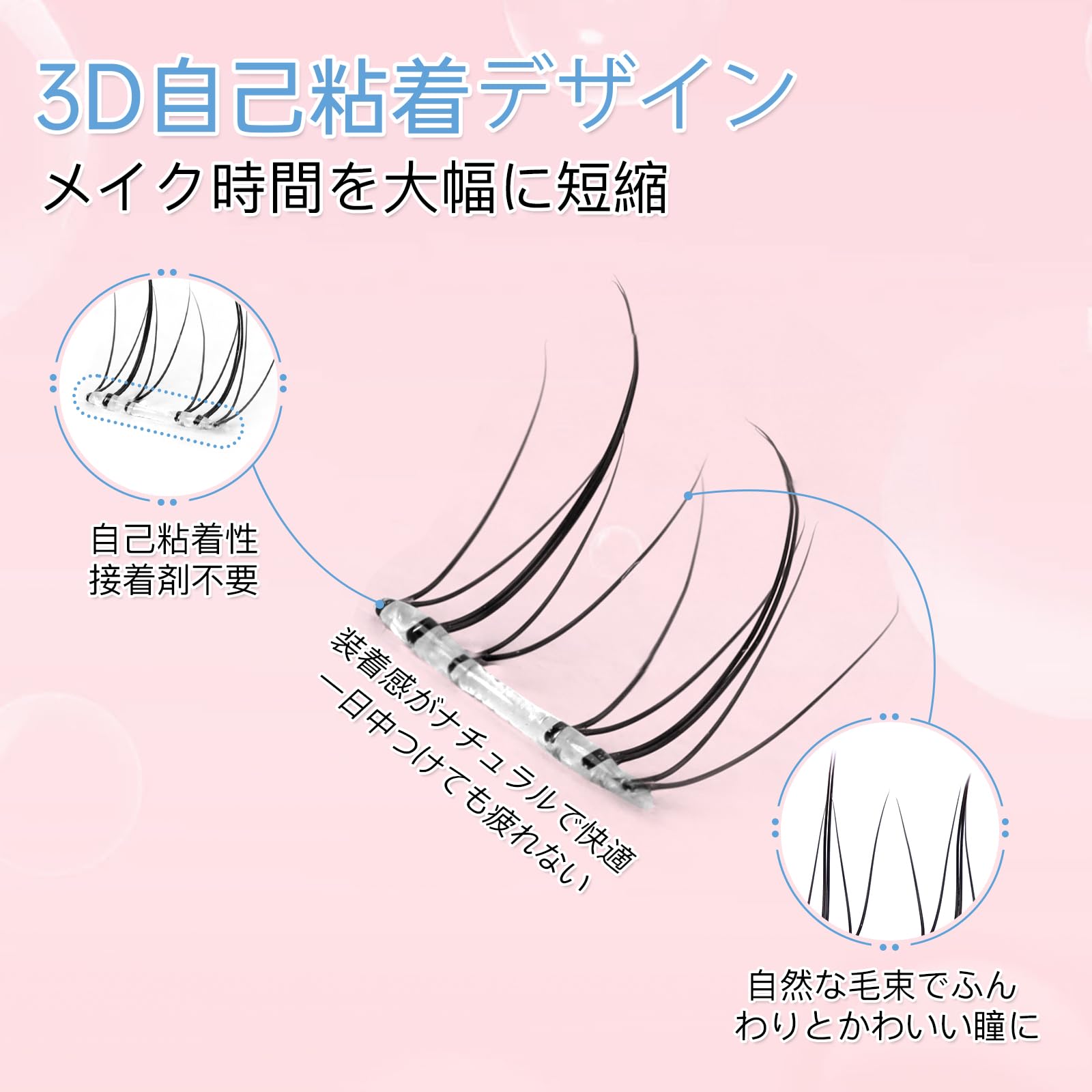 接着剤不要1秒装着:いつもまつげに時間がかかります?1秒装着でき、メイク時間の短縮した3D自粘式つけまつげをぜひ試してみてください。接着剤を要らず、まつげを乗せるだけで簡単に仕上がります。初心者でも手軽にご利用いただけます