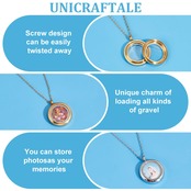 UNICRAFTALE 2セット 2色 メモリーロケットペンダント ステンレススチール ブランク フラット ラウンド フローティングロケットチャーム ゴールドネックレス ガラスフォトチャーム付き ネックレスジュエリー製作用, Pendant:25mm Long, ステンレススチール, 宝石なし。