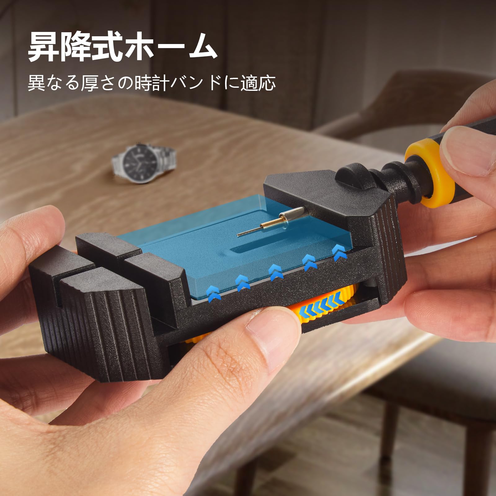 【多機能】ウォッチリンクピンリムーバーとストラップホルダーを1つのツールにまとめました。このツール1つで、ウォッチリンクピンの取り外しと取り付けができます。ネジ固定の時計バンドは適用できません。