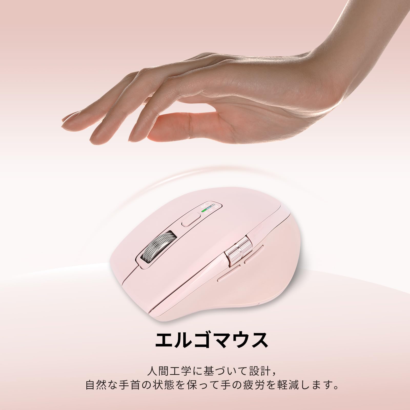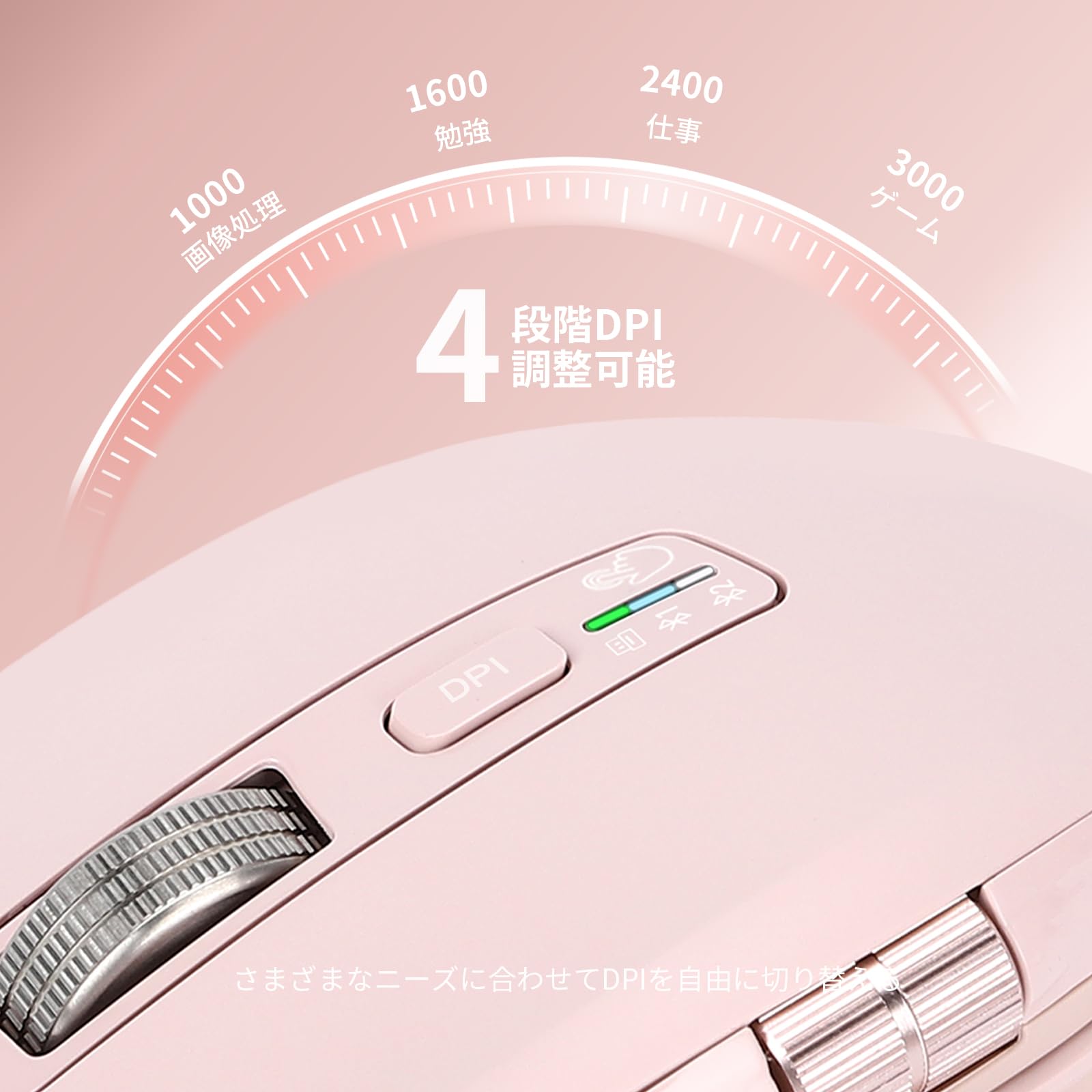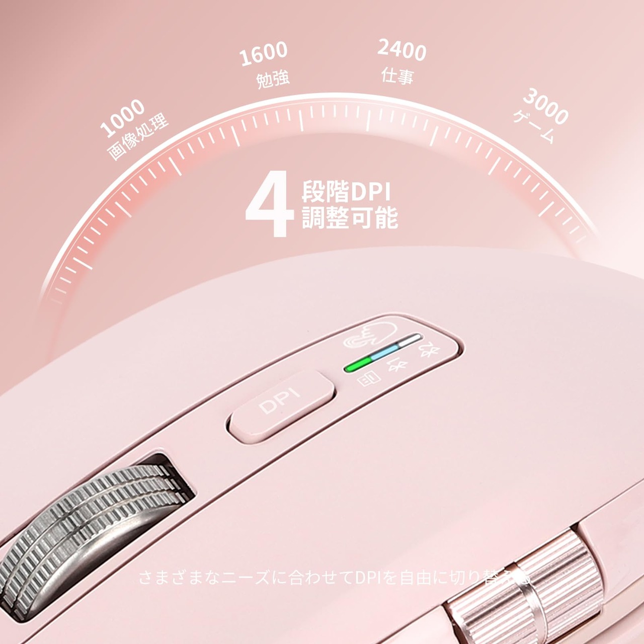 INFINMIND ワイヤレスBluetoothマウス 高速スクロール DPI切り替え マルチデバイス対応 人間工学 サイレントマウス サイドサムスクロール ピンク