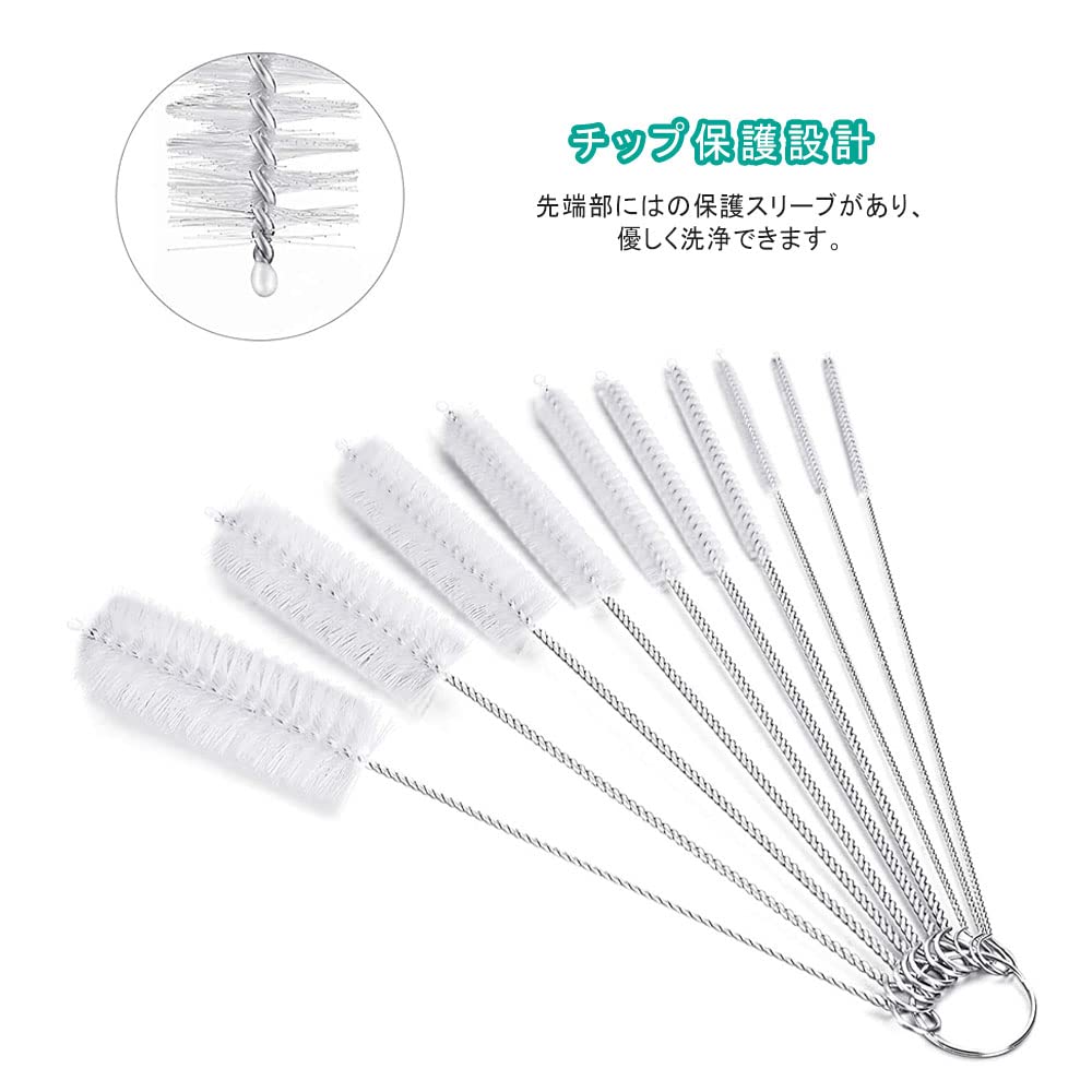 DFsucces カップブラシ 10点セット 細口瓶洗浄ブラシ ストローブラシ 哺乳瓶ブラシ ホース専用 極細タイプ 隙間ブラシ ロングチューブブラシ キッチン注ぎ口洗いブラシ 異なる直径 (白色)